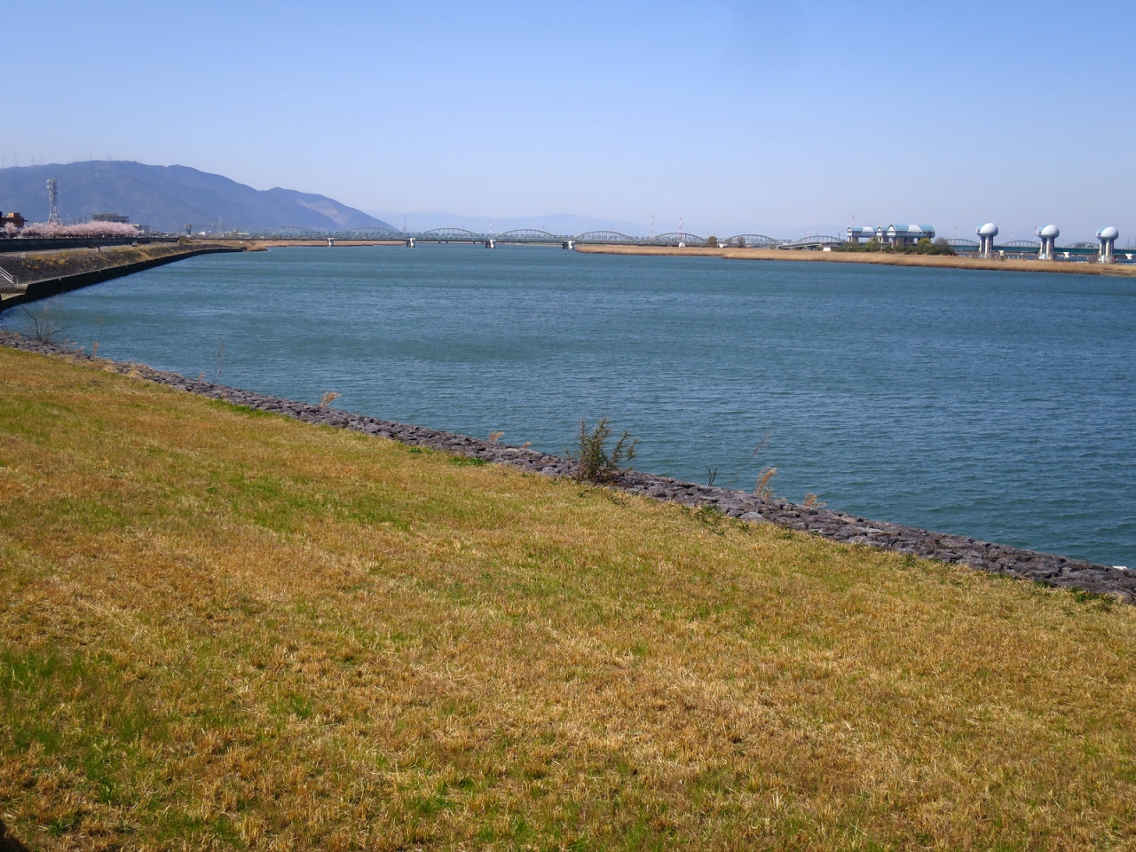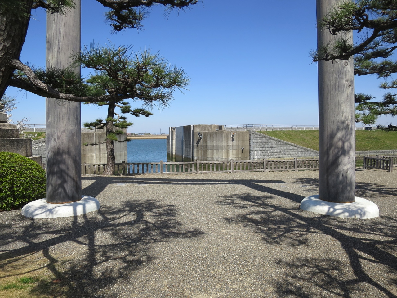 - かつての渡し場は伊勢湾台風によってコンクリートの堤防・水門に代わっていましたが、伊勢神宮の鳥居と蟠龍櫓は嬉しく思いました