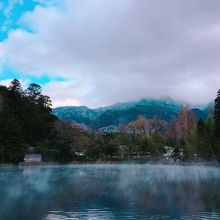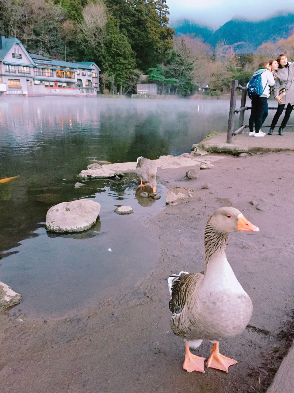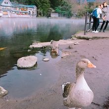周りの温泉が関係してて、一部温泉がこの湖に流れ込んでることもあり、水温が高い場所もあるからか、秋や冬にかけての朝霧は相当綺麗なようです。 私が訪れた冬の日は、午前中は雪が降ってて午後から晴れたので、気温は低い状態がkeepされたまま、水温が高かったからなのか、午後でも霧のような景色が見えて、素敵な写真を撮れて大満足です。 観光客鳴らしたガチョウも湖沿いをお散歩してました。