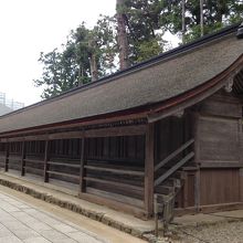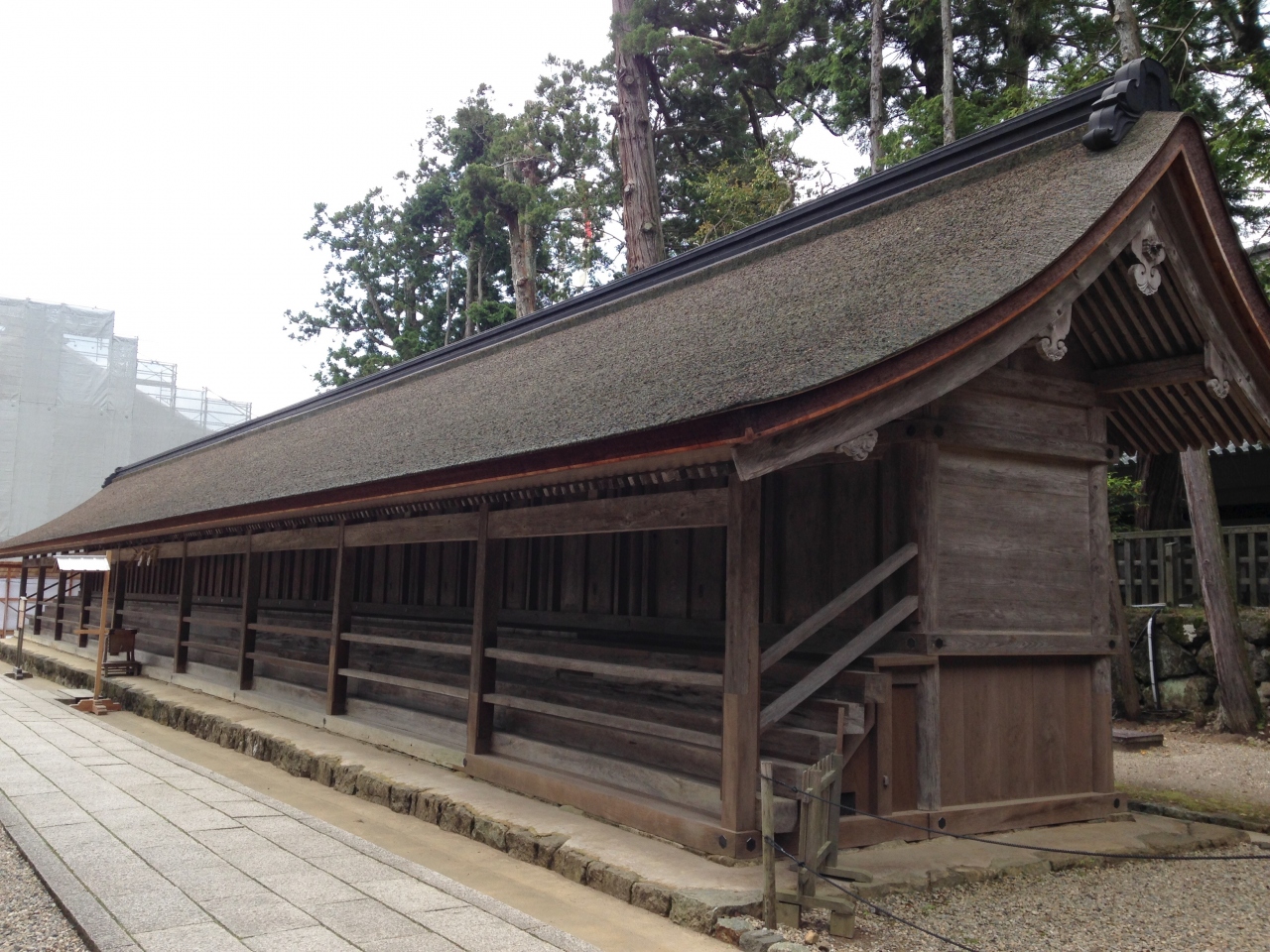 本殿の東西に向かい合うようにして建っています。全国800万の神様が神在機関の間、宿泊される社だそうです。普段、扉は閉められていますが、神在祭の時だけ扉が開かれるとのことです。長い社も迫力を感じますが、38全ての扉が開いた社はさらに迫力が加わるだろうと思いました。