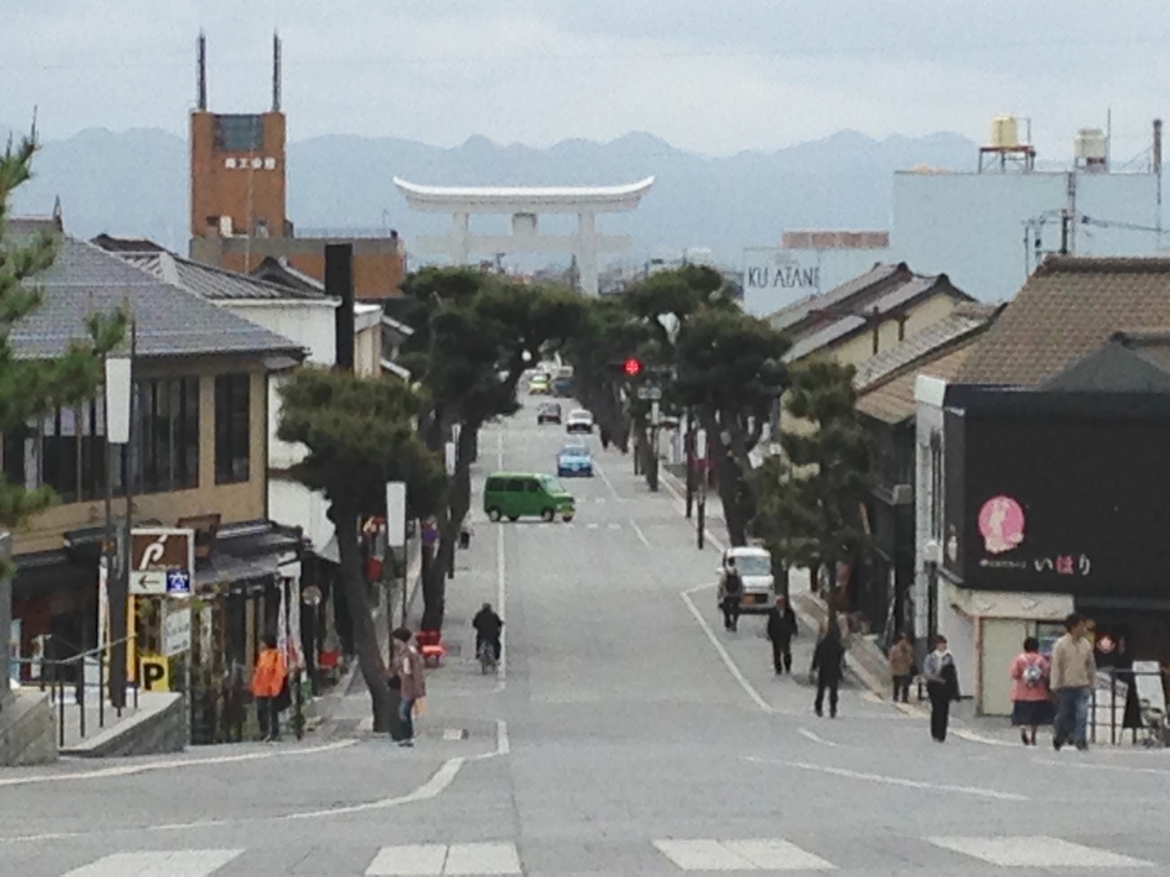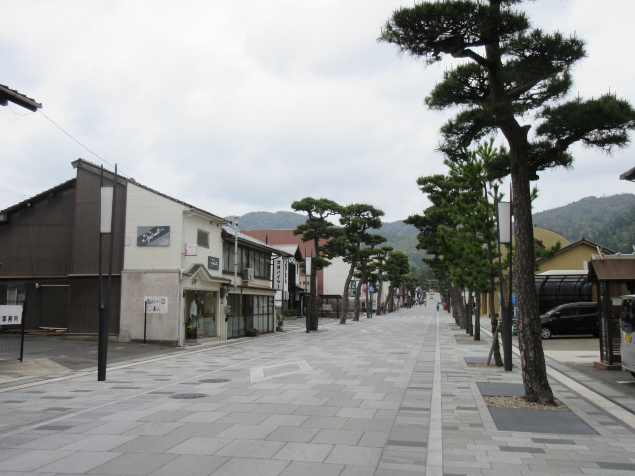 堀川に架かる宇迦橋の大鳥居から、出雲大社の入口に建つ勢溜の大鳥居までの間にある、活気が感じられる600mほどの参道です。道の両側には松の木が植えられ、甘味処やカフェ、蕎麦屋、土産店などが並んでいます。歩道と車道が一体化されているので歩きやすく感じました。店に入り、参拝に疲れた身体を休めるのも良いと思いますが、通り沿いに置かれた大黒様の石像を見つけながら散策するのも面白いかと思います。登録有形文化財の一畑電鉄出雲大社駅や宇迦橋の大鳥居などの見どころもあります。