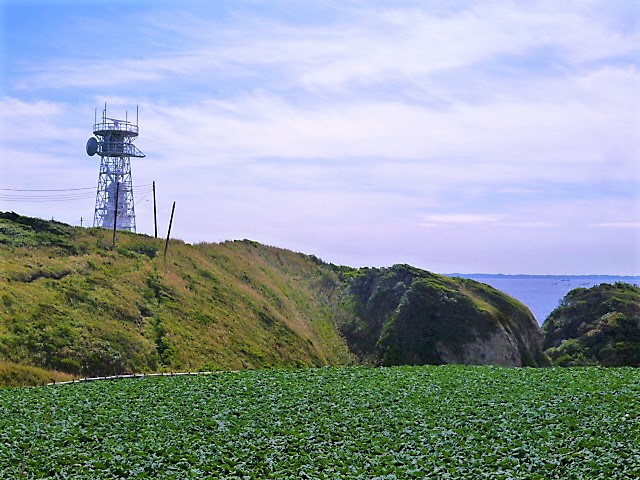 三浦海岸から東海岸ドライブコース(県道215号)を走っていると剣崎バス停が、剣崎灯台を見たくて、お地蔵さんが並んでいる交差点を左折を! 一本道を通ると急に視界が開けて野菜畑と海が/びっくりしたのは大島も間近に!/そして灯台も(^o^) 近づくと灯台と電波塔が。灯台は敷地内から全体が見えました…東京湾の入り口で大事な役割ですね。