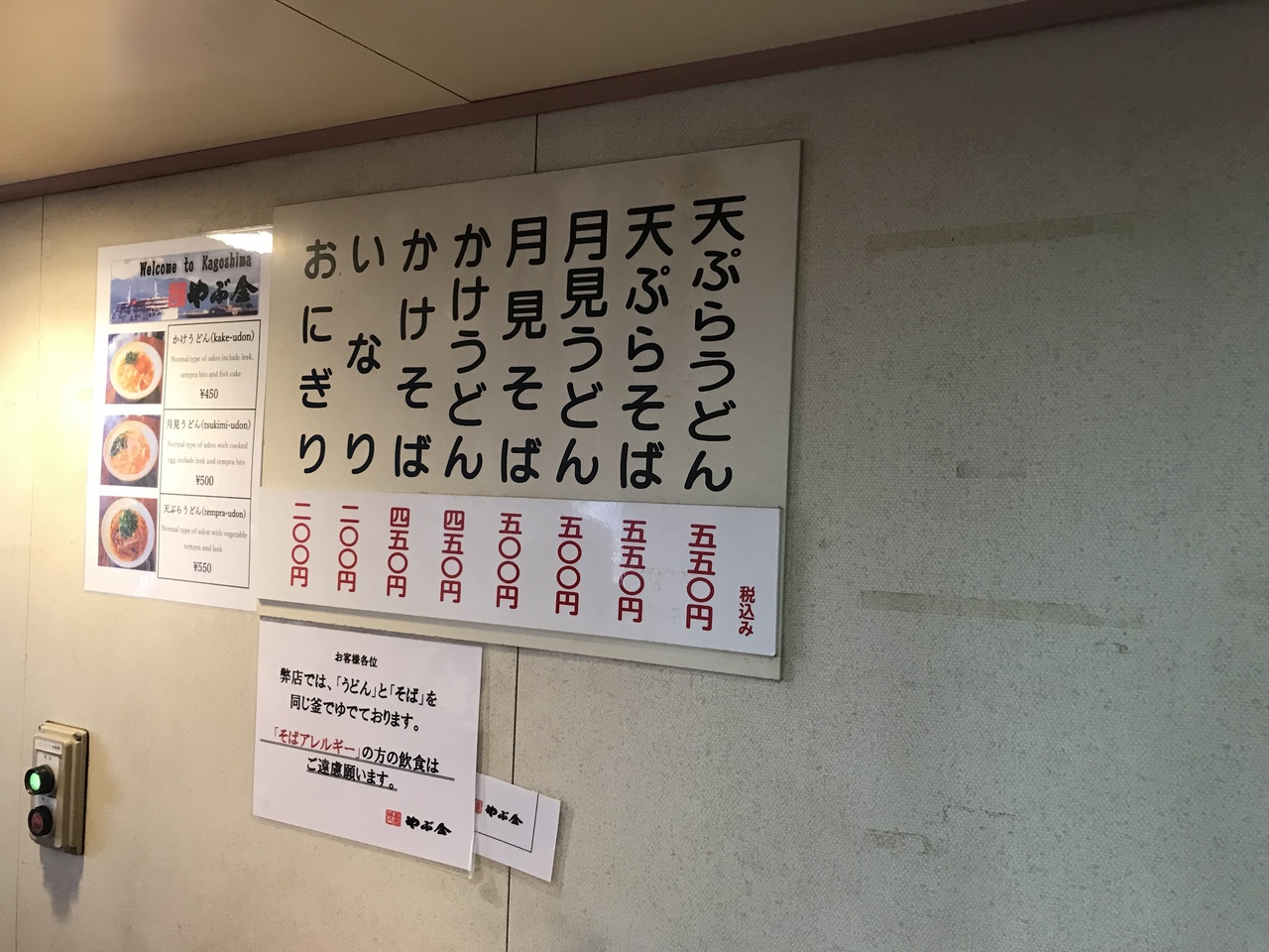 桜島フェリー内にあるうどん・そばのお店です。店内にはテーブル席はなく、立ち食いスペースが5~6人ほどありました。