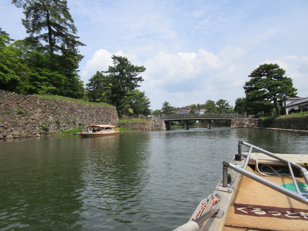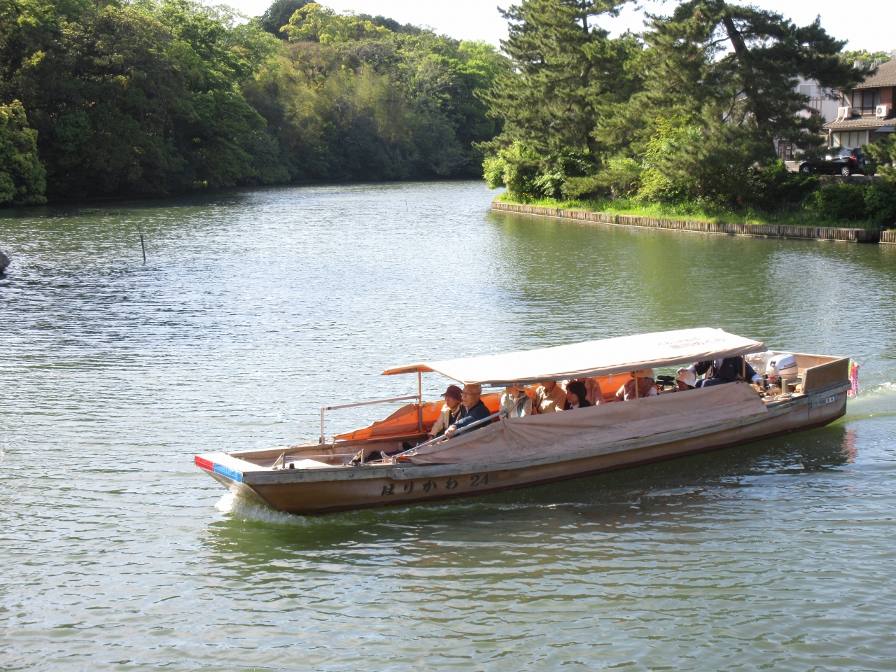 水の都・松江を小舟に乗って堀から眺めることができる交通機関です。松江城の周辺3.7kmほどの間に3つの乗船場があり、外堀、中堀、内堀をのんびり45分ほどかけて回ってくれます。乗船券を購入すると1日中乗り降り自由です。船頭さんの面白い話や得意な民謡を聞いたり、低い橋のところでは腹ばいになったり、楽しい船遊びができます。乗船前に訪れたい場所を決めておくと、効果的に松江の町を巡れると思います。私たちは乗船場で乗り降りしながら合わせて2周船旅を楽しみました。