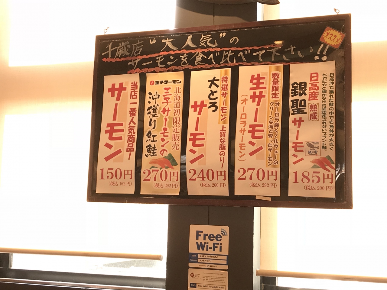 千歳川にかかるサーモン橋たもとの回転寿司屋さん