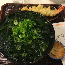 都内で美味しい讃岐うどんを頂くことが出来るお店。ランチタイムは2,30人以上の行列が出来ます。比較的に空いている時間は夕方です。10人くらい並びますが、10分程で席に案内されます。わかめうどん600円に海老の天ぷら280円を注文。たっぷりのわかめは磯の香りがして最高です。スープもうどんも美味しいです。海老の天ぷらは残念。風味も味わいもイマイチ。メニューに載りはじめに食べた時はとても美味しかった記憶があります。