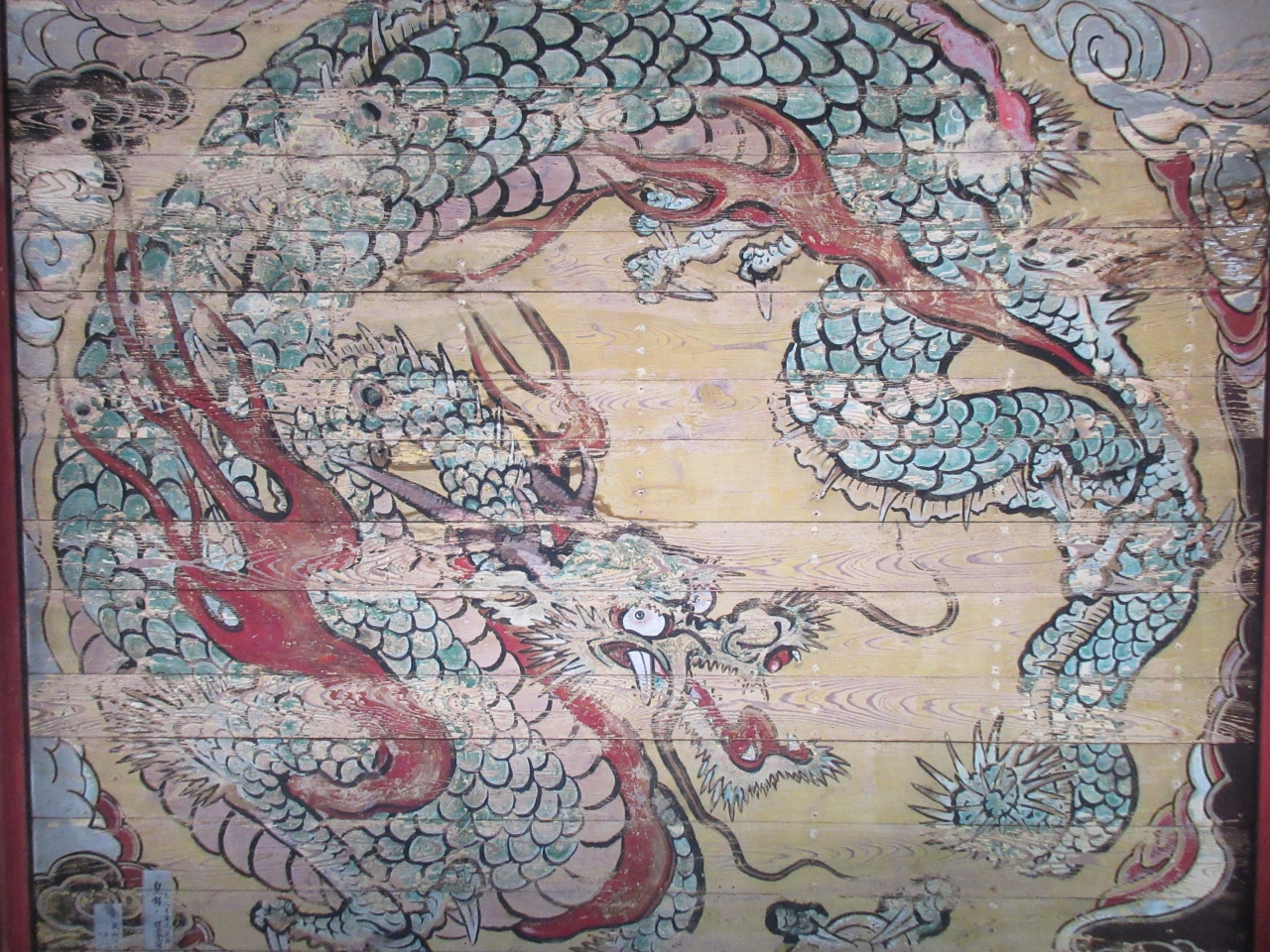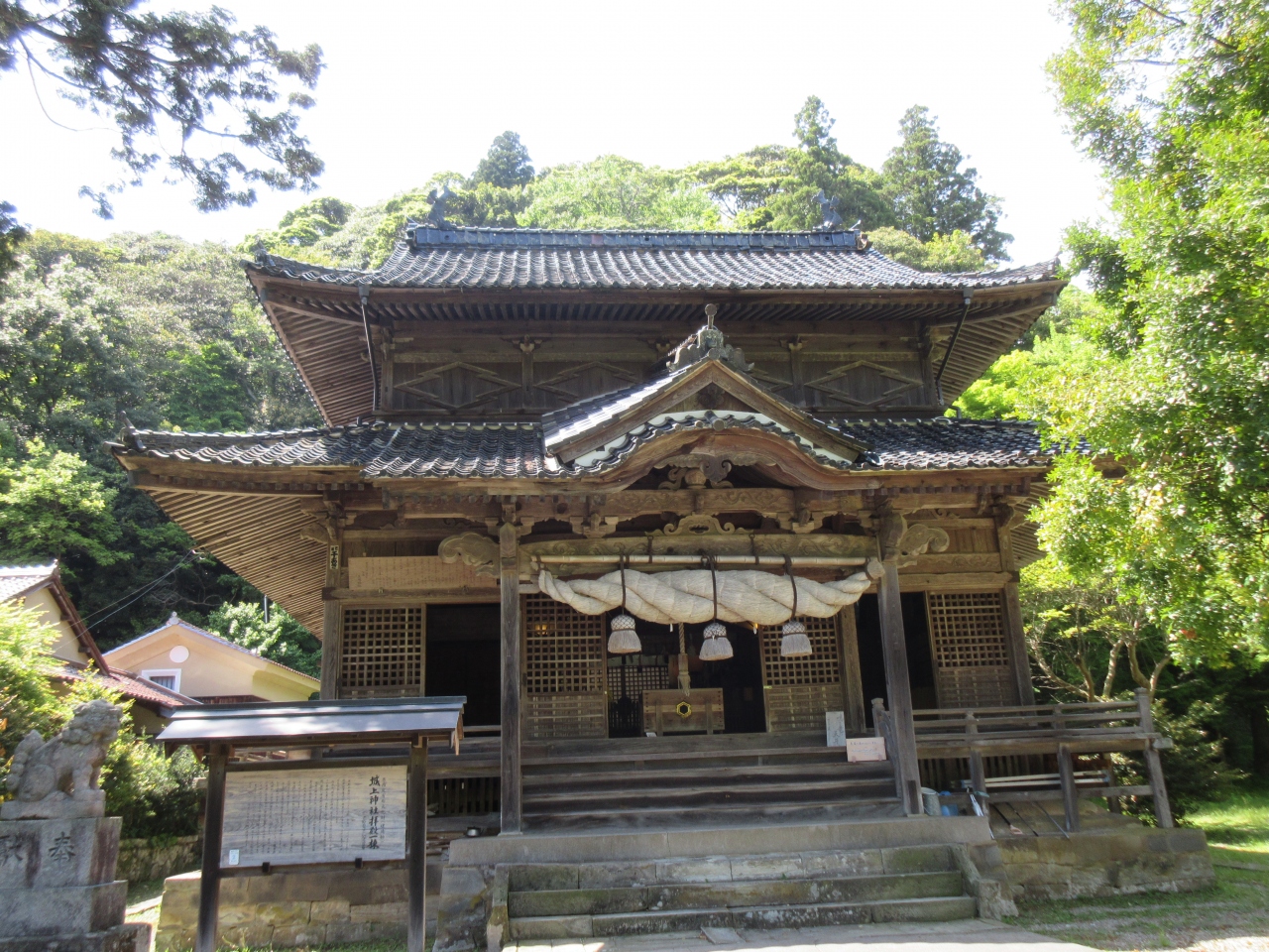 大森地区の最も端に建っている神社で、大森地区と銀山の氏神様が祀られています。再建されてから200年近く建つ社殿は木造の趣ある建物です。拝殿の天井には、響いている時間は短いですが、手をたたくと不思議な音がする鳴き龍が描かれています。神社は平安時代の古書にも載っているので、かなり歴史があると思われます。石見銀山を訪れる人も、ここまでやってくる人は少なく、境内に植えられた大きな桜の木を眺めながらのんびりすることができました。