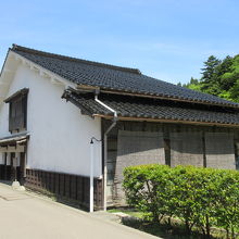 石見銀山大森地区のドイツパンを販売する店・ヒダカの隣に建っています。公用でやってくる役人の指定宿を請け負ったり、代官所からの伝達を伝え、代官所と村を仲介する役割を果たしたりする郷宿を勤めていた家柄でした。外観は白壁で、中には帳場や立派な梁があり、銀山で重要な役割を果たしていた家柄だったことがわかる造りの建物です。