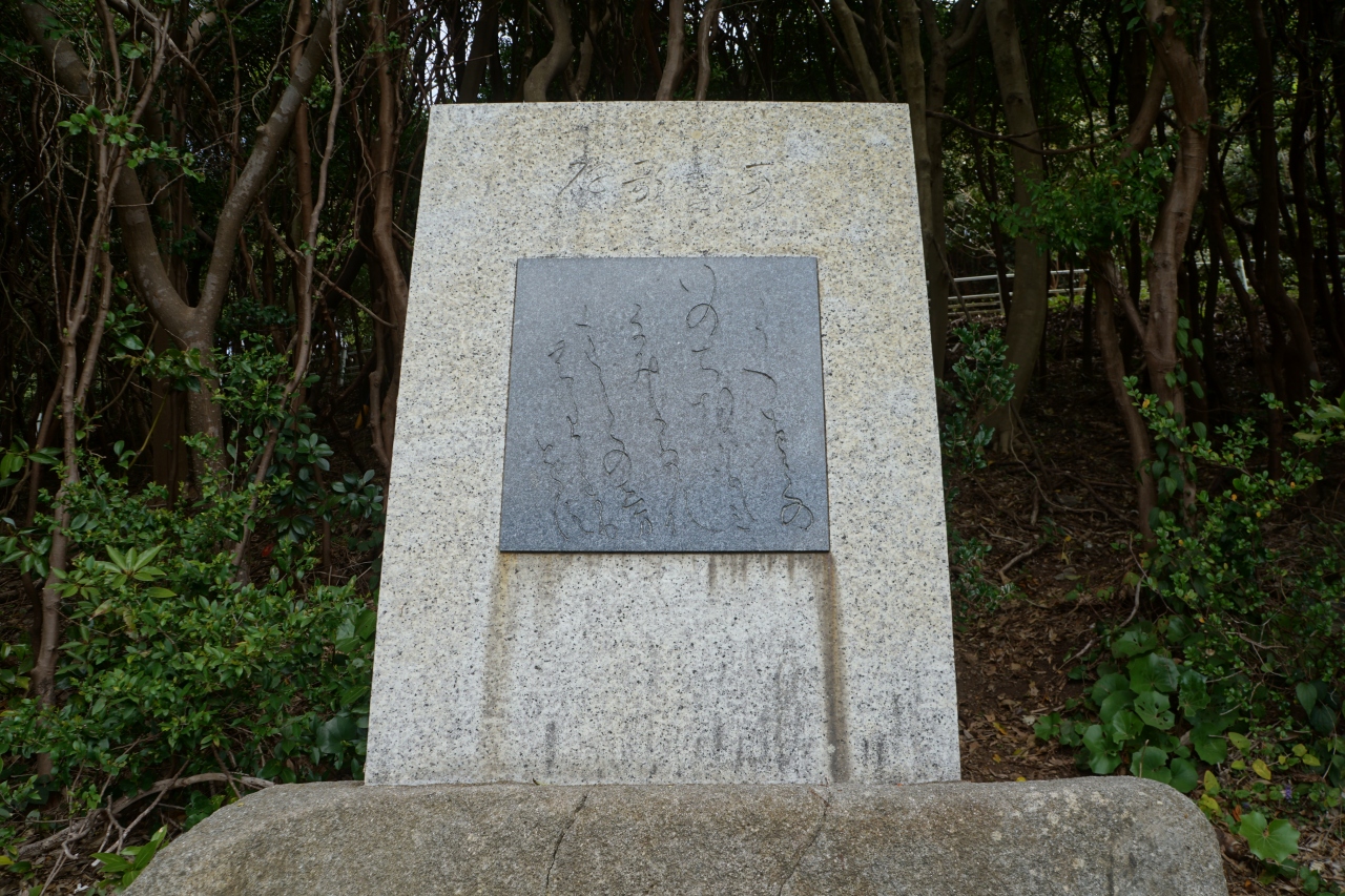 万葉の歌碑は、伊良湖岬灯台から背後の山の方に急な石段を上がった先。海を見下ろす場所です。