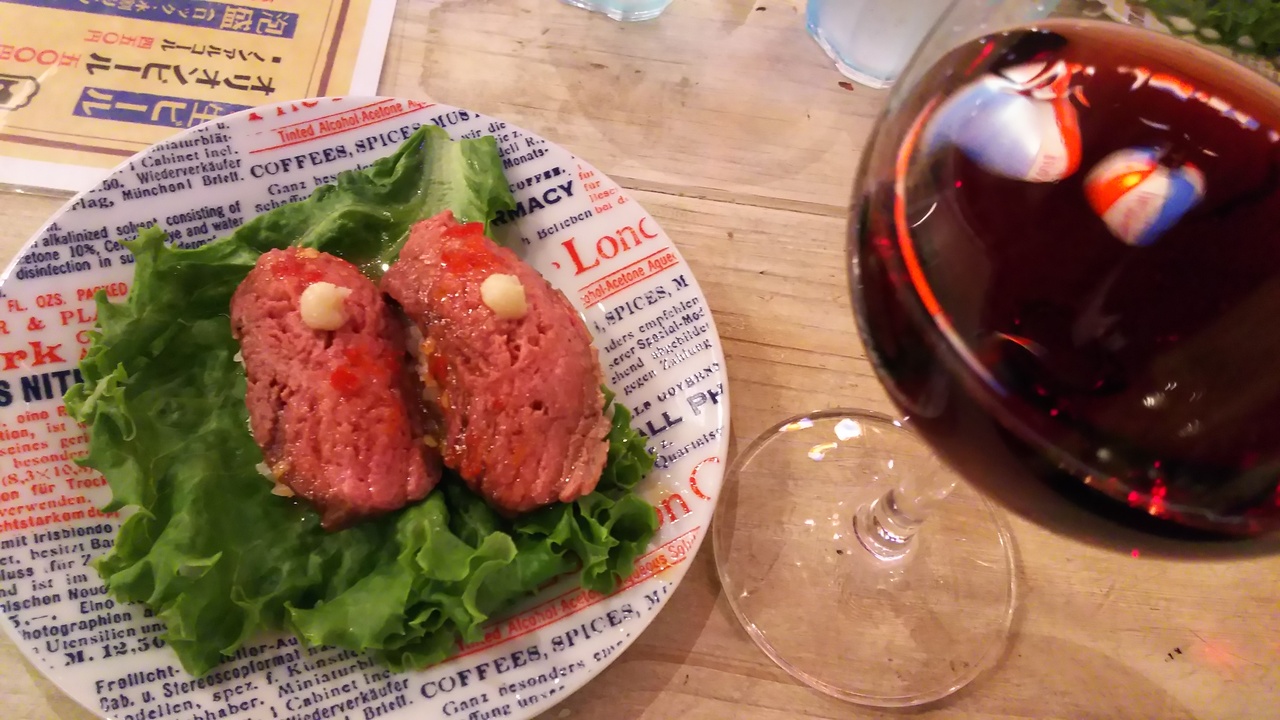 那覇国際通り近くの屋台村の中にある、肉バルHIROTO-YA。ゴールデンウィーク中で、とても賑わっていました。既に他で食べてきたので、軽く肉寿司と赤ワインをいただきました。赤身のお肉がワインと良く合い、締めにちょうどいい塩梅でした。