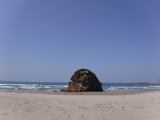 年に一度旧暦10月に全国から八百万の神様がこの浜から上陸し出雲大社へ向かうそうです。何となく千と千尋の神隠しを思い出しました。是非出雲大社をお参りする時はここを訪れたいと思っていたので、定期観光バスに乗車しました。出雲大社からも歩いたり路線バスでくることもできますが、距離がちょっと長いのと時間の関係もあるので、効率よく観光する定期観光バスは良かったです。神様と同じく、まずはここを訪れてから出雲大社にお参りしました。訪れた日は天気がとても良く、青い空と青い海、浜辺にぽつんとある弁天島は神秘的でした。