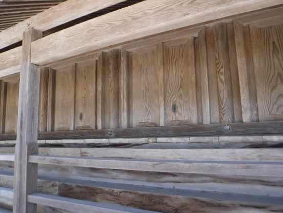 本殿を挟んで東西に細長い社のようなものがそれぞれあります。シンプルな造りで沢山の扉がついていますが、すべて閉まっているので説明がないと何の建物か分かりません。年に一度旧暦10月に全国の八百万の神々が出雲に集う際の宿泊所だそうで、扉は個室、プライバシーが守られた部屋ですね。その時期以外は扉が閉まっており閉店ガラガラ状態です。