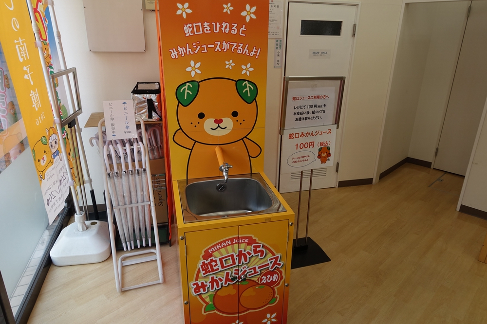 こちらの店には、あの「蛇口からみかんジュース」もありました。1杯100円なのでお手軽なんじゃないでしょうか。ロープウェー街にあるので観光ついでに気軽に寄りやすいです。