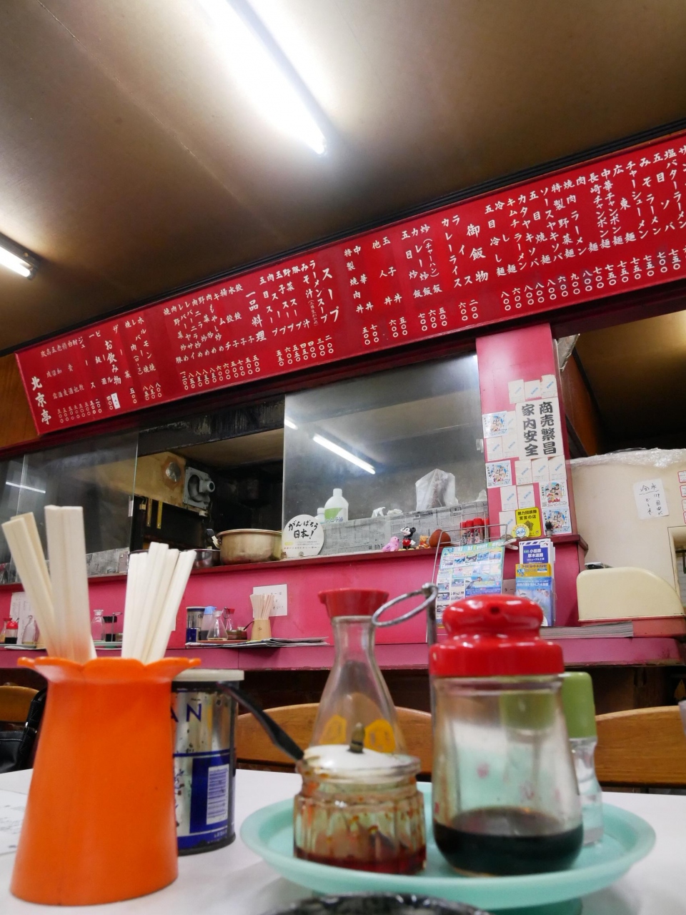 下田駅ホーム端踏切横の北京亭、初めて夜に