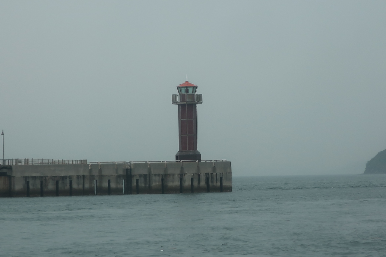 高松港から北東に伸びる玉藻防波堤の先端にある赤い灯台です。小豆島に渡る船に乗船すると高松港の外海にでる際に左手に見ることが出来ます。全面ガラスの壁面で造られた灯台は他では見たことがない灯台ですが、昼間に見るとブイを防波堤に乗せたかのように見えます。夜見ると全体が赤く輝いて綺麗なのでしょうが、昼見るとあんまりです。