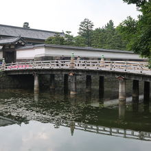 皇居東御苑の北側、平川門の前の濠に架かる橋です。珍しい木製の美しい橋で皇居の濠に架けられた橋で木製のものは和田倉橋とこの橋しかありません。欄干には古そうな擬宝珠が残り、江戸時代のそのままの姿が残る橋として貴重なものだと思います。