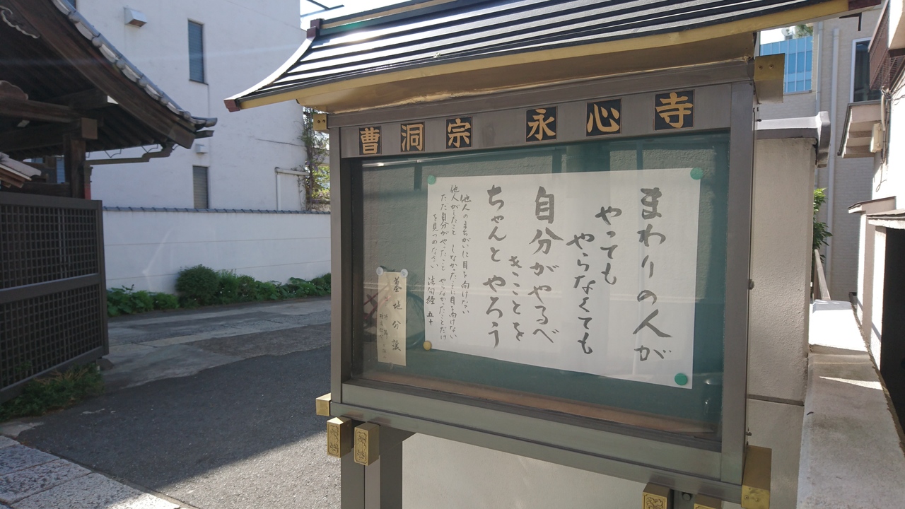 四谷の戒行寺坂を上ったところには、たくさんの寺院が密集していました。長い歴史を感じさせる寺院が多く、そのほとんどが江戸城外堀の建造に伴って麹町清水谷から移転してきた寺院です。曹洞宗の永心寺も歴史を感じさせる寺院で慶長9年(1604年)に創建されたそうです。