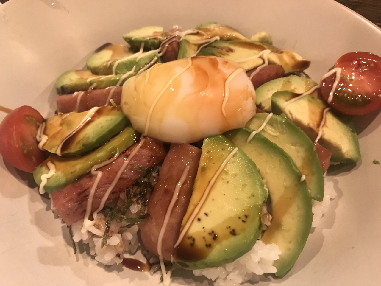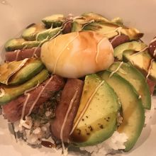 アボカド好きにはたまらないアボカド料理専門店。女性でも入りやすくまったり出来る雰囲気で実際に女性客多いです。スムージーからデザートまで、アボカドメニューが多種多彩で注文するのに悩みます。一番人気のスパム丼がお勧め。