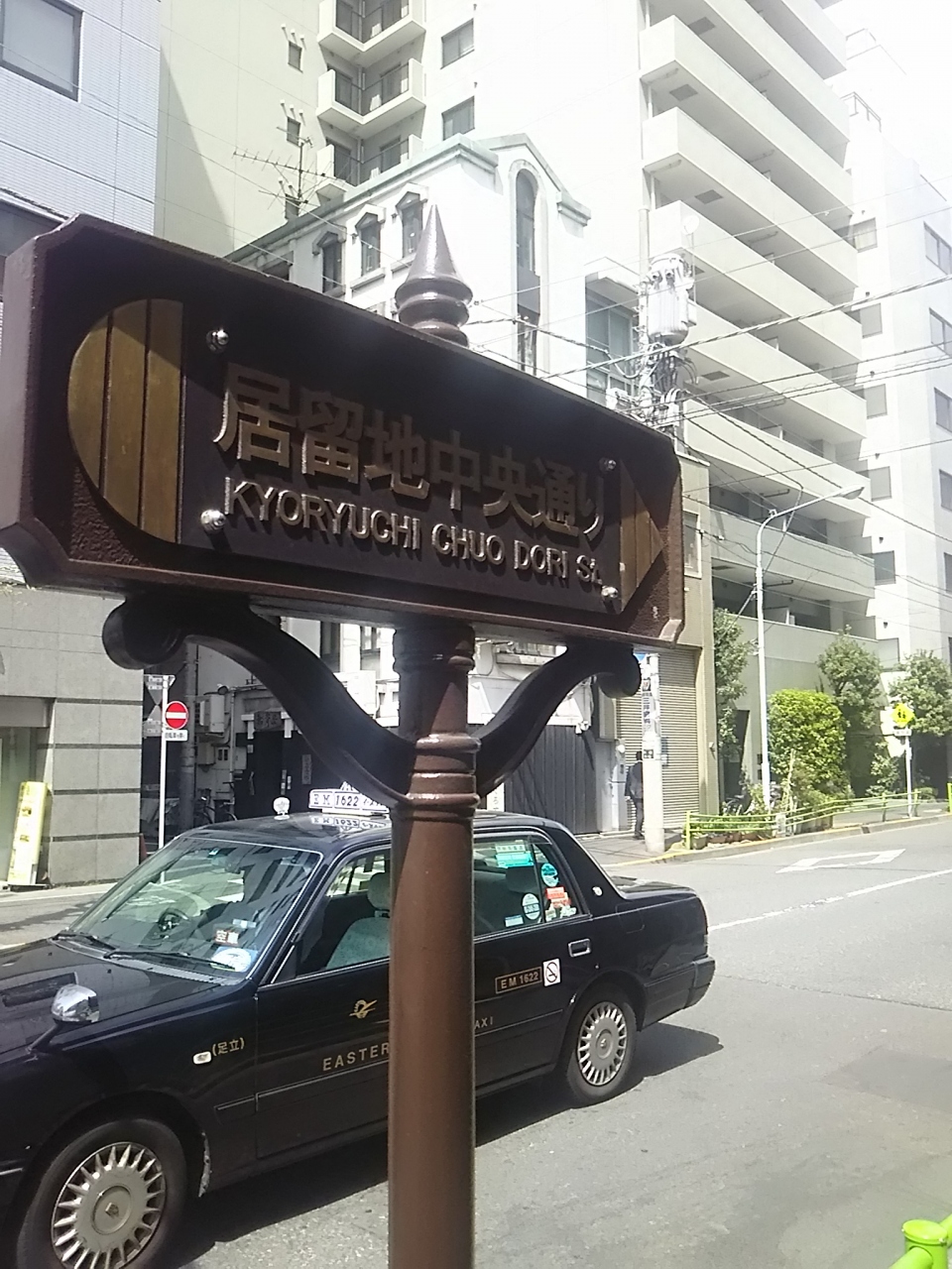築地の中にある路地のひとつで築地で、どちらかといえば西本願寺の裏ぐらいの場所に当たると思う 江戸の末期はこちらが外国人の居留地として運営されていた当時の名残りが今でも通りの名前はあちこちに史跡があることでをよくわかる 通りの名前のプレートをみることができる