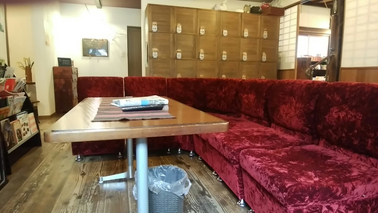 入浴後はソファーに座ってのんびりしてましが、スタッフさんと地元の方のアットホームな会話に心が和みました。