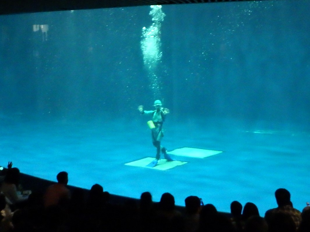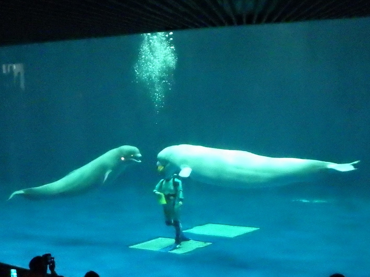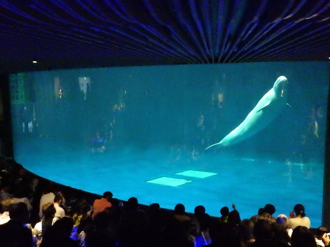 シロイルカのショーは大変混みます。GWでしたが、朝10時過ぎくらいまでと15時過ぎ位であれば並ばずに入れました。それ以外はかなりの長蛇の列で待っていました。