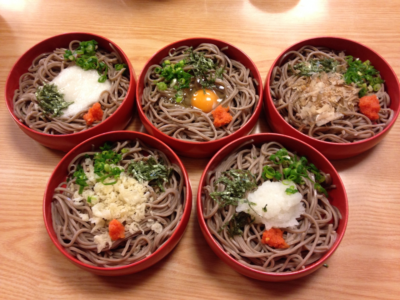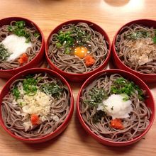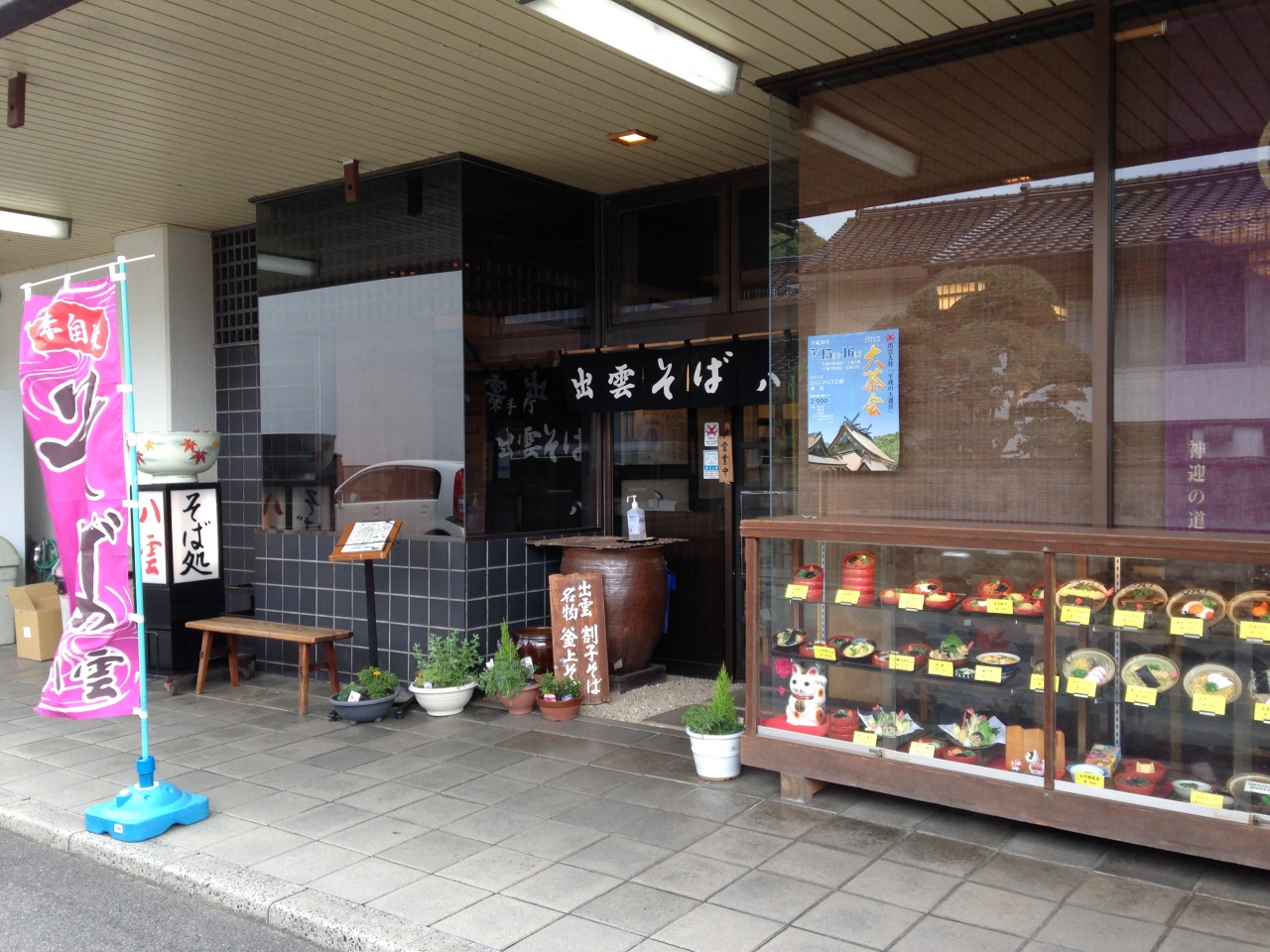 朝から出雲大社をゆっくり回り、昼前に昼食に利用しました。出雲大社連絡所バスターミナルそばの八雲そば本店は休業していたので、西の祓社近くの東店へ行きました。三色割子と五色割子を注文しました。三色割子は揚げ玉、山芋、卵がのっていて、五色はその他に大根おろし、鰹節がのっていました。どの蕎麦にももみじおろしがのっていました。黒っぽく細い蕎麦はこしがあり、器に直接かけるそばつゆは甘口でした。蕎麦湯がそばと一緒に出てきて蕎麦湯を飲みながら蕎麦を食べることができるのが新鮮でした。平日昼前から観光客が次々と入てくる人気店でした。蕎麦好きにおすすめの店です。