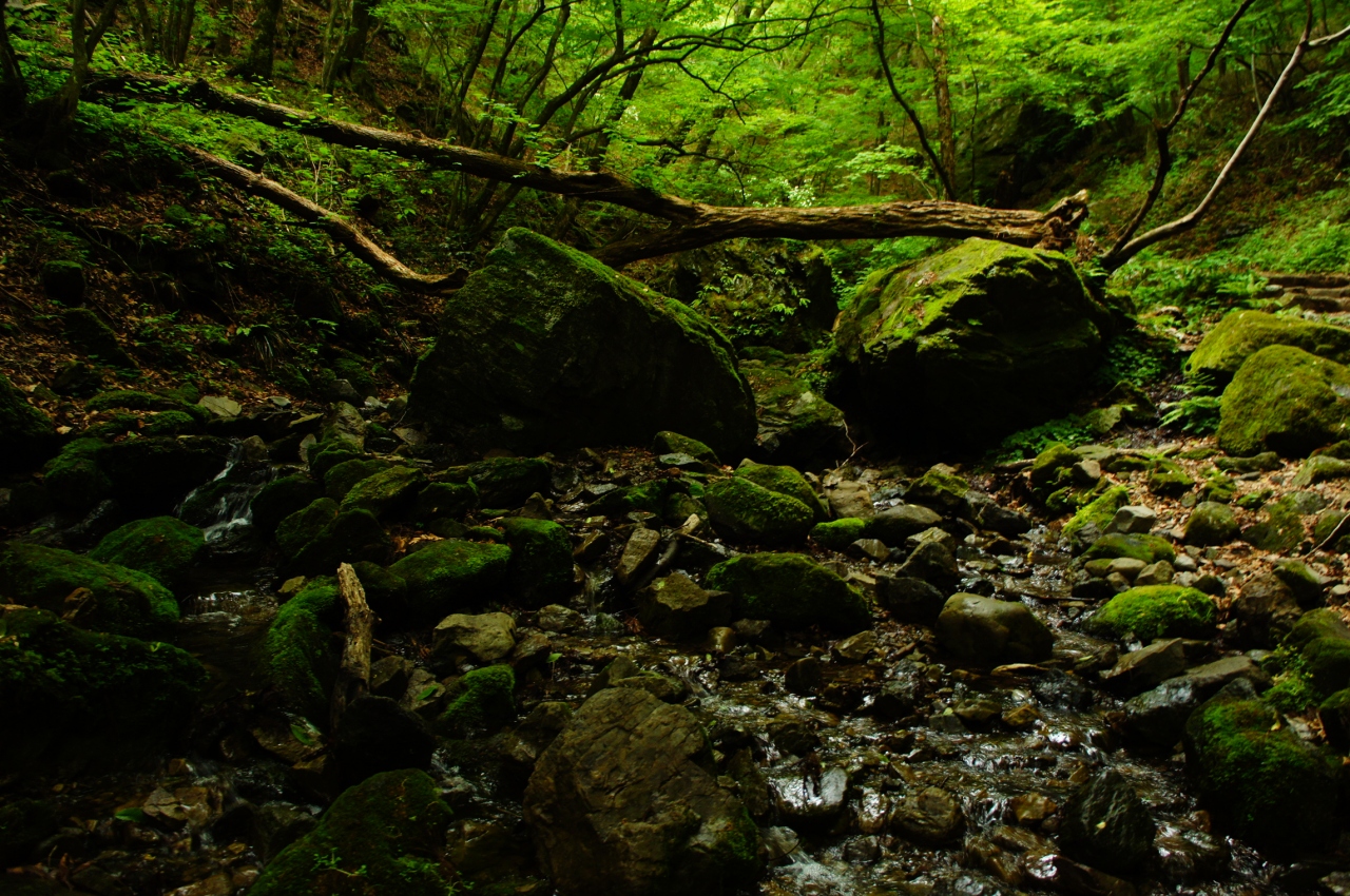 七代の滝の下りと天狗岩までののぼりがきつかったです。あとは清流沿いをのんびりハイキングできました。新緑と苔の緑にいやされました。