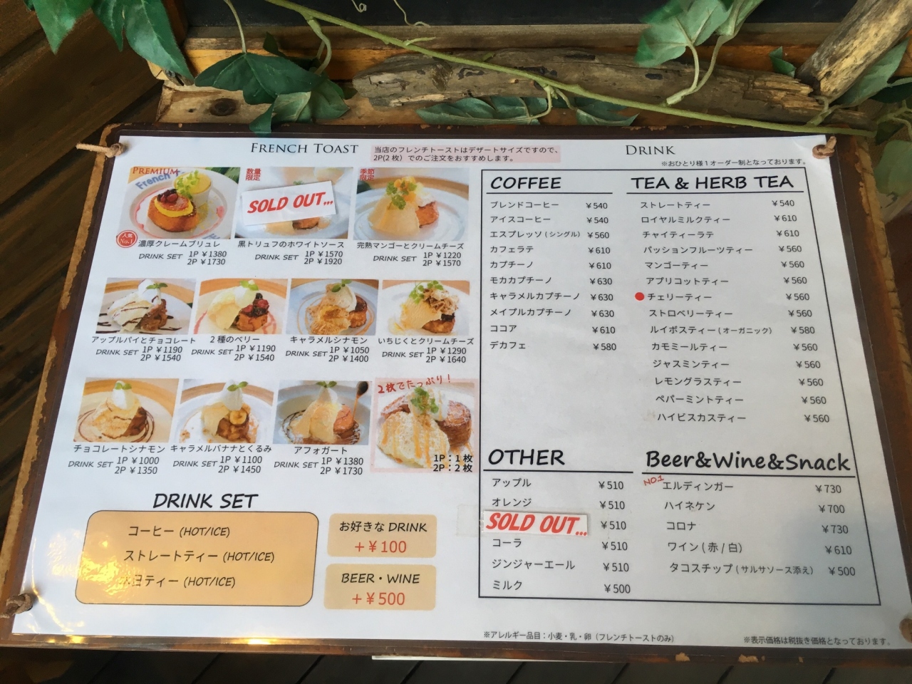 私たちは、フレンチトースト2Pのドリンクセットを4つと単品のドリンクを5つ注文して、フレンチトーストの方は9人でシェアしました。