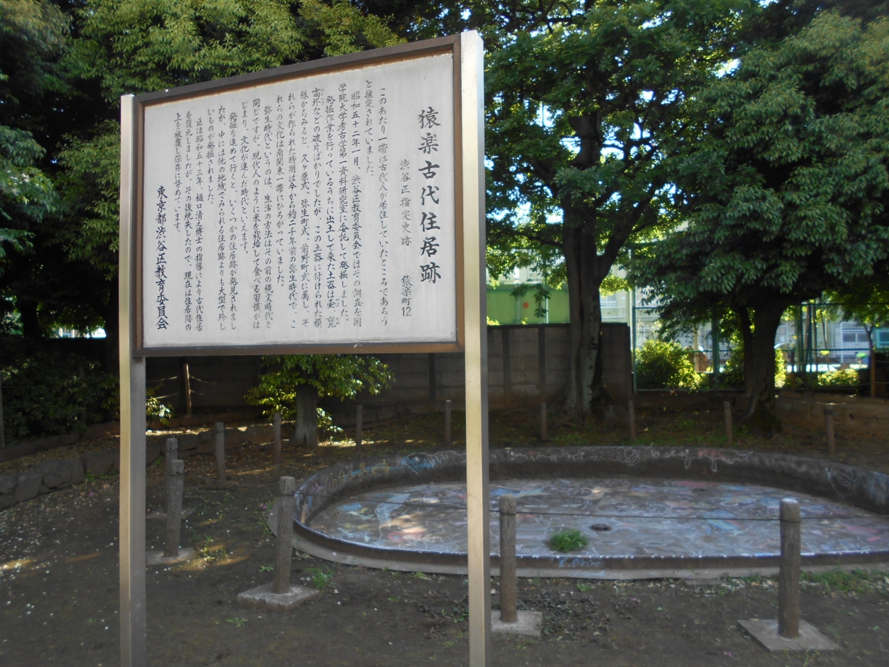渋谷駅前の歩道橋から「さくら通り」を通って「乗泉寺」などを訪問しながら代官山へ向かう途中、右手にある公園の中のところに「猿楽古代住居跡」の案内があったので、休憩がてら入ってみました。