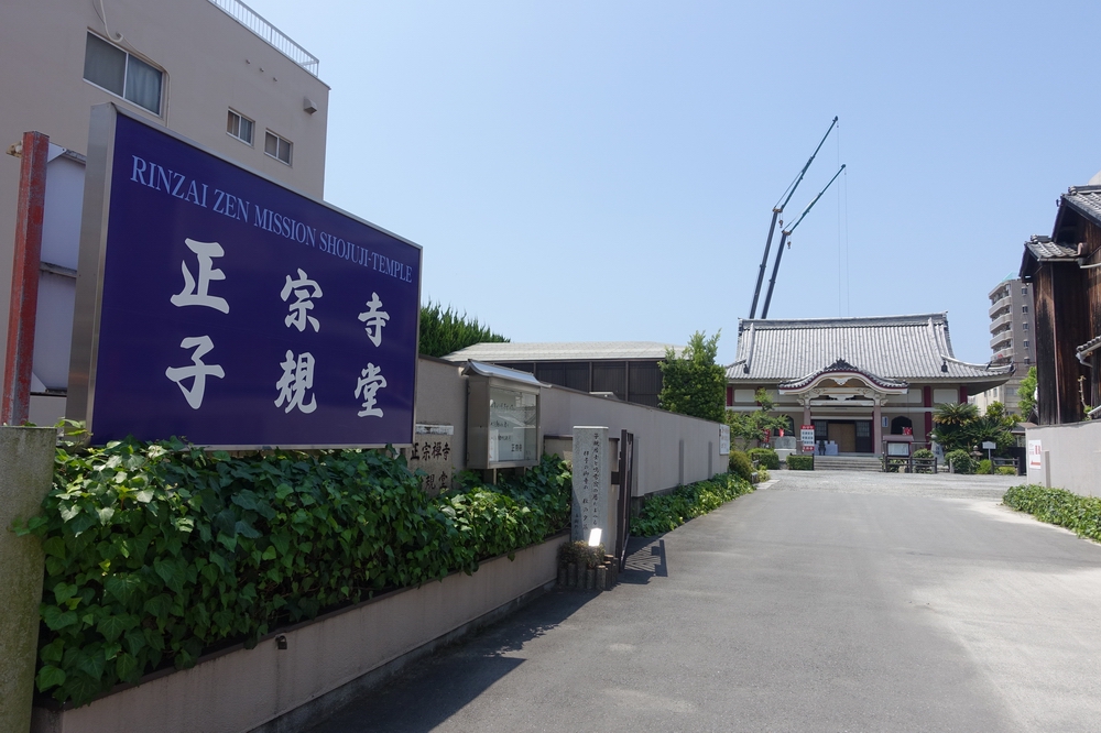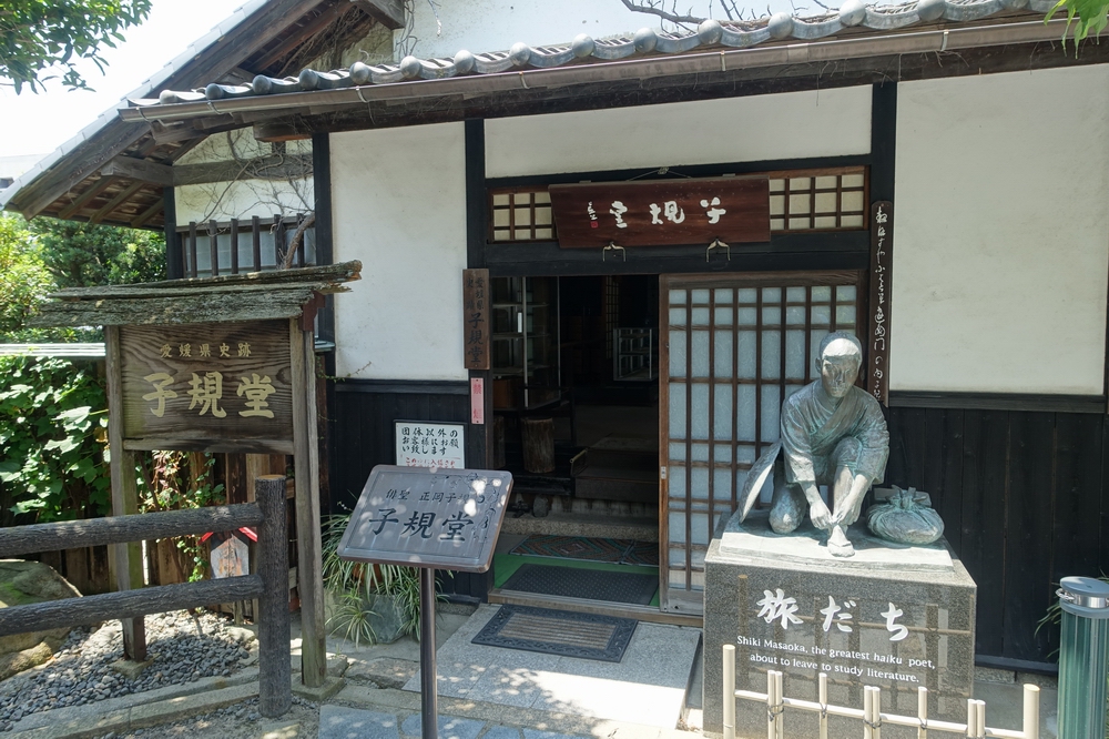 場所は正岡家の菩提寺である正宗寺(しょうじゅうじ)の境内。松山市駅から数分の場所なんですが、寺の入口は東側にあるので初めてだとやや分かりづらいかも。境内に無料で駐車できるので車でのアクセスも可能です。境内を進むと子規堂は本堂に向かって左手にあるのですが、まずは本堂右手の入場受付へ行きましょう。入場料はたったの50円です!