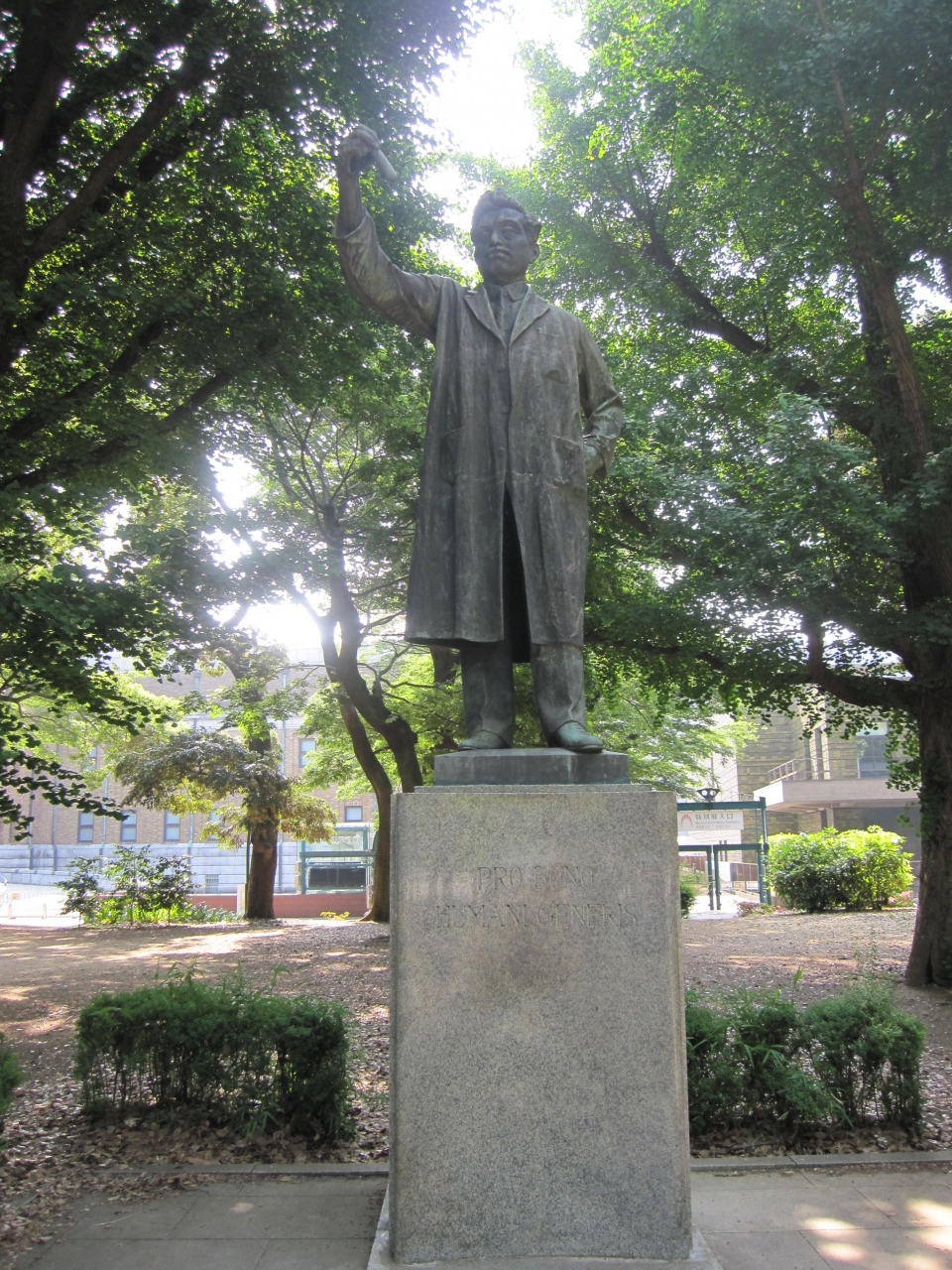 上野公園の大噴水の東側の雑木林の中に、試験管を掲げた白衣姿の野口英世像が立っていました。上野公園にはこれまで何度も来ていますが、今まで全く気付かなかったです。