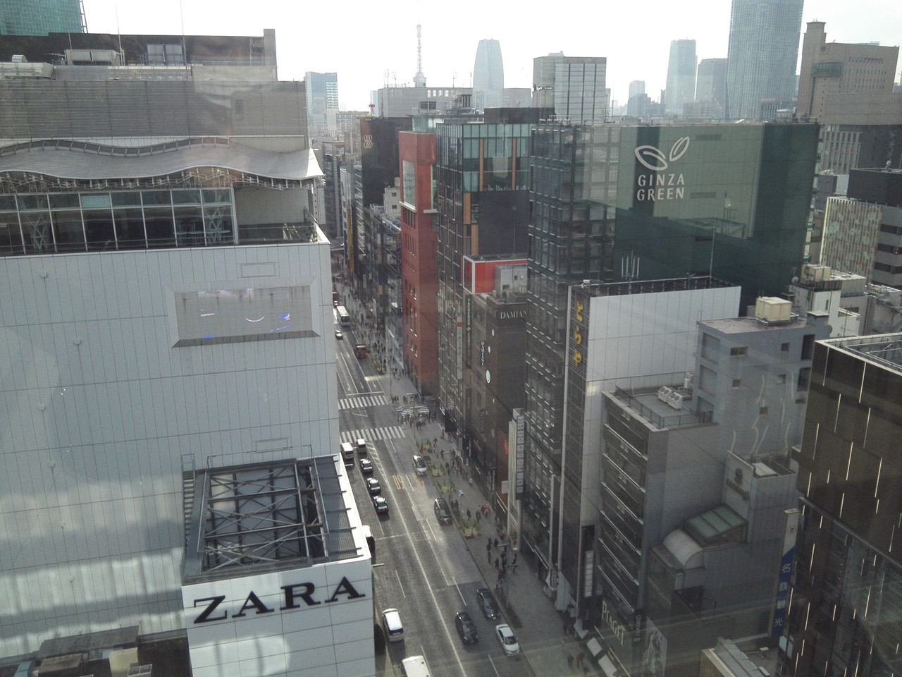 屋上は一周できて高いビルに遮られながらも銀座が見わたせます。