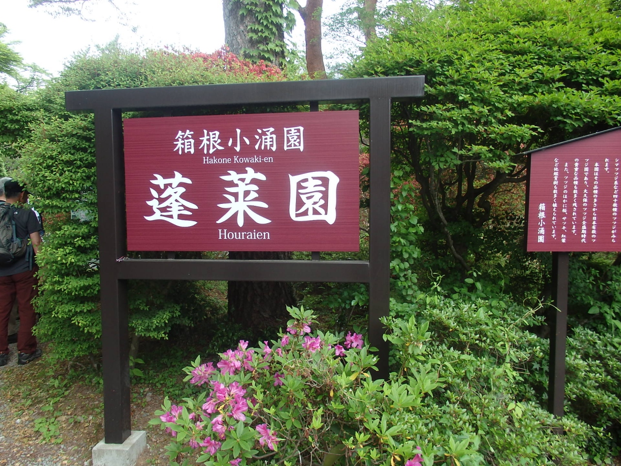 バス停畑宿から登って鷹巣山山頂を経て4時間蓬莱園に到着(直接行く場合は小涌谷駅から徒歩15分)。所有は三河屋旅館ですが、管理は箱根町で都市公園として無料開放されている。ツツジを見に寄ったのですが、残念ながらほぼ終了し、僅かのツツジが残っていて登山の疲れを癒してくれました。10日位前に来たら良かったと思います。また秋の紅葉も隠れた名所であるので、再度来園したいものです