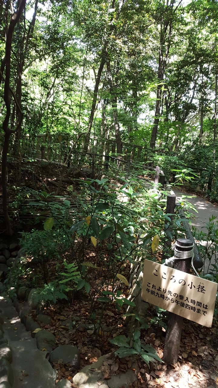 神楽殿からこころの小径を通って本宮に出ました。木立や清水社は涼しげな雰囲気です。実際暑い日でしたがこころの小径はずっと木陰になっていて涼しかったです。9時から夕方4時までだけ通り抜けできます。