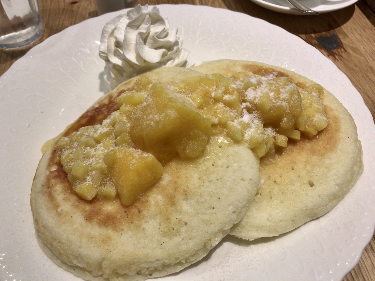 マンゴーののったパンケーキは、白いパンケーキ。