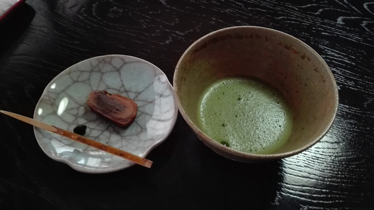 お茶室に和風のテーブルと椅子がしつらえられており、畳に座らなくても食べられるのが有りがたい。部屋の外には日本庭園があって、京風の風情のある庭が美しい。
