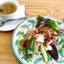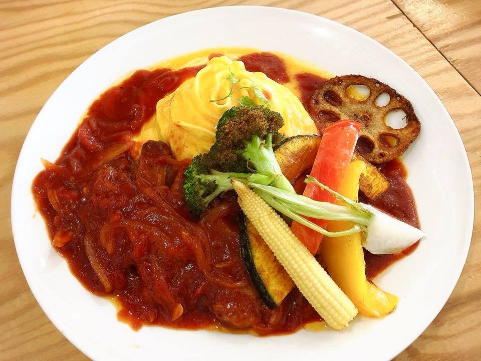 今回はランチで、季節野菜のトマトソースオムライスのセットを注文。