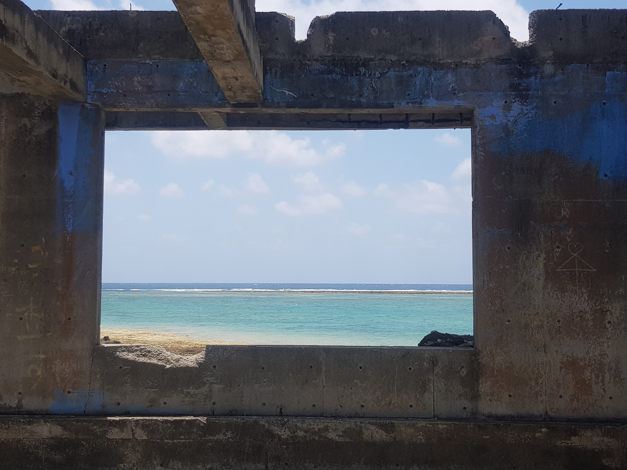 島に入って右回りで一周しましたが、まずは橋を渡ってすぐの天ぷら屋さんに長蛇の列でした。そこから少し海沿いに進んでいくと、ビーチに車で降りれます。そこに廃墟のような建物がありましたが、それはそれでいい感じでした。島半周あたりから、海沿いには車で行けず、あっという間にスタート地点に戻ってきました。