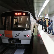 白色の車体にオレンジ色のドアが特徴的でした。最近はホームドア設置によりよく見えなくなってきていますが・・・ 車内のドア上には電光掲示の路線図があり、列車の位置に合わせて現在地が光るので目的地までの駅数が簡単に分かるようになっているので、不慣れな人でも分かりやすいです。日中では7分に1本運転されており、座れないほどの混雑ではありませんでした。