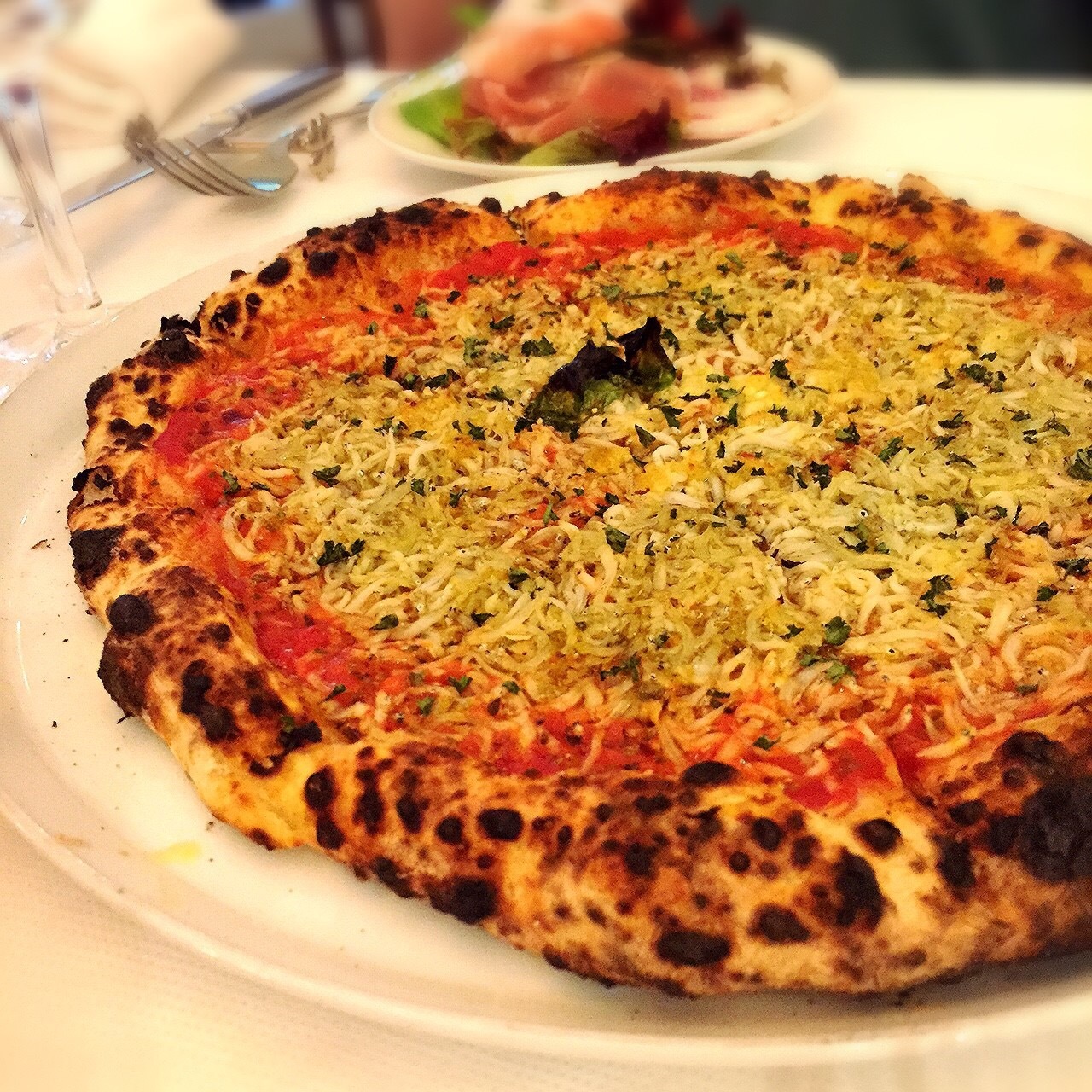 シラスを使ったトマトのピザがとても美味しくて感激。二人でペロリと食べてしまいました。