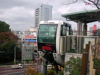 王子駅から飛鳥山に向かい石段を上る道もありますが、無料で乗れるミニモノレールがあり、しばらく待ってアスカルゴに乗ると、窓からは飛鳥山を上る都電や王子駅、音無渓谷を見下ろして、すぐに山頂駅に到着しました。