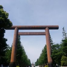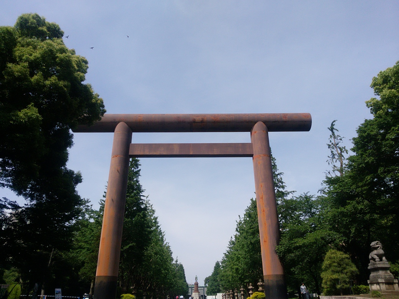 地下鉄九段下駅から靖国神社の境内に入ると最初に目にするのが、第一鳥居(大鳥居)です。巨大な鳥居で高さは25メートルあるようです。靖国神社のシンボルとも言える鳥居です。これだけ大きな鳥居なので見ごたえはありますが、鳥居全体を入れた写真を撮るには一苦労します。
