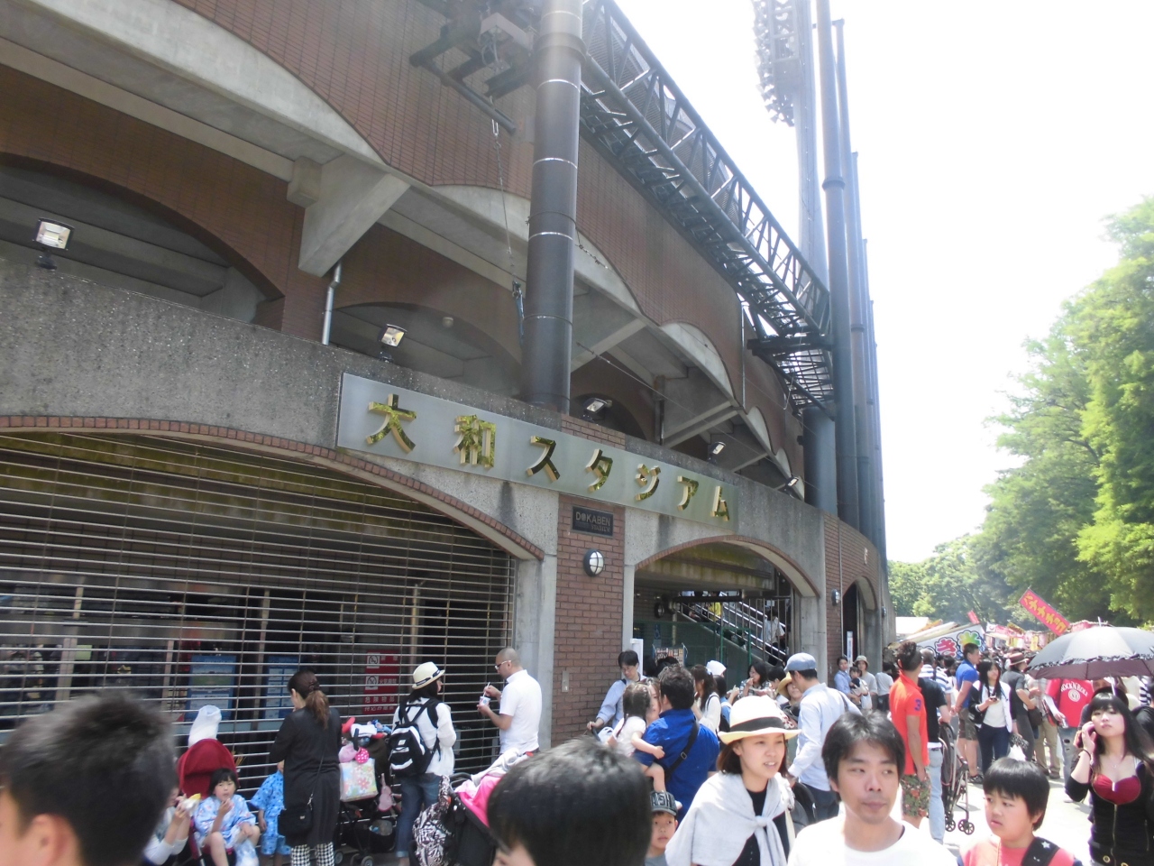 大和引地台公園の中にある球場です。野球の試合も行われますが、ここに来たのは大和市民祭りが理由でした。大和市最大の祭りと言われるだけあって相当にぎわっていましたが、この球場も会場の一つとなっており中ではマーチングバンドの演奏が行われていました。とてもにぎわっていました。