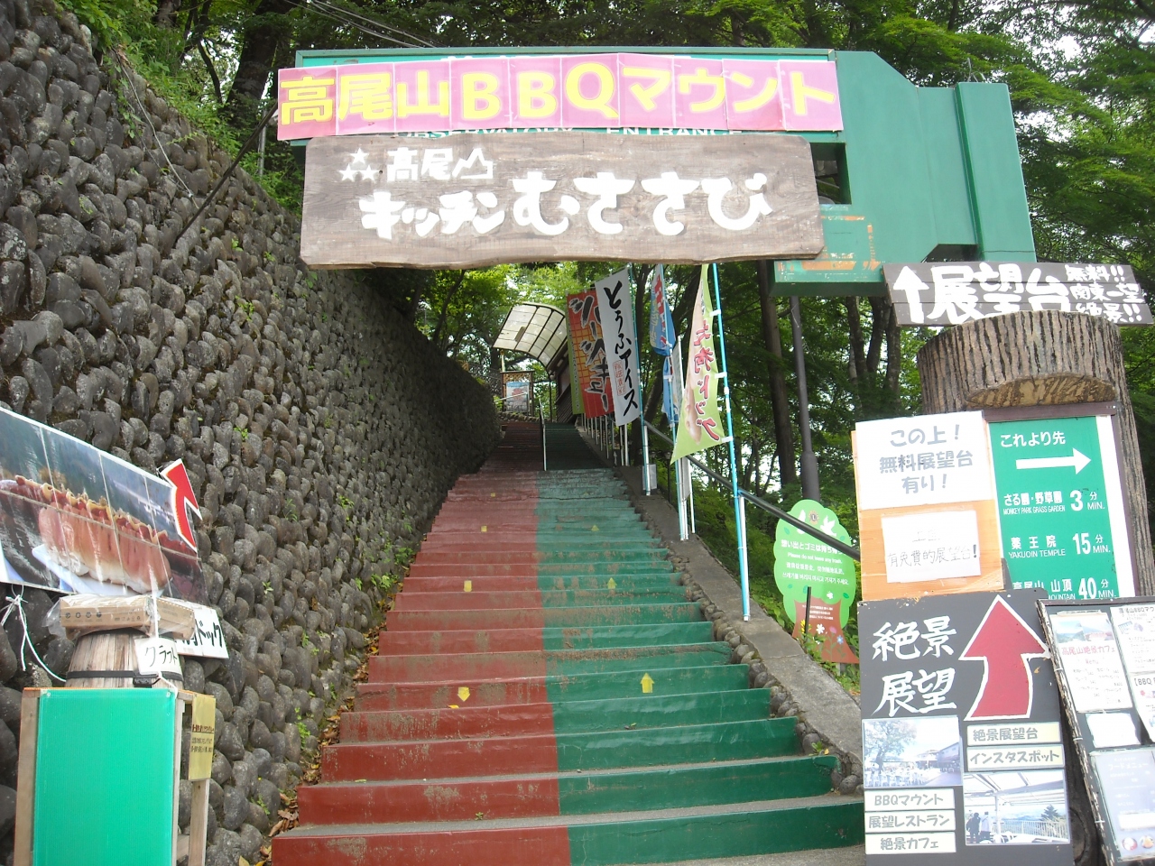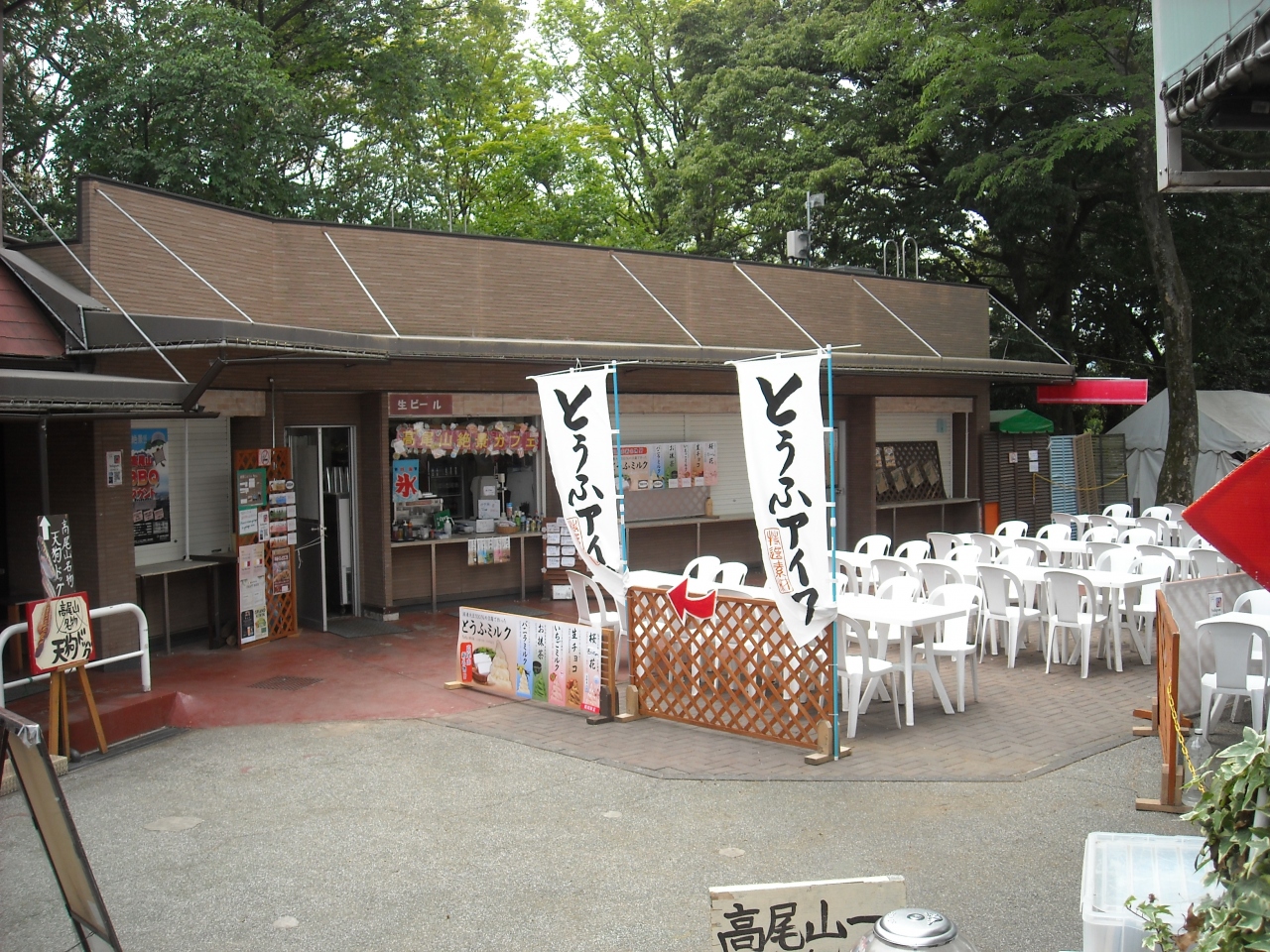 ケーブルカー駅近くの小山にあるフードコート。展望室からは東京方面が望め、屋外でも飲食が楽しめます。メニューも豊富で珍しいローカル色の強いものもあり興味深いものもあります。むささび・このあたりから出没するのでしょうか? 空中飛行感を堪能あれ、