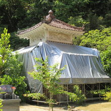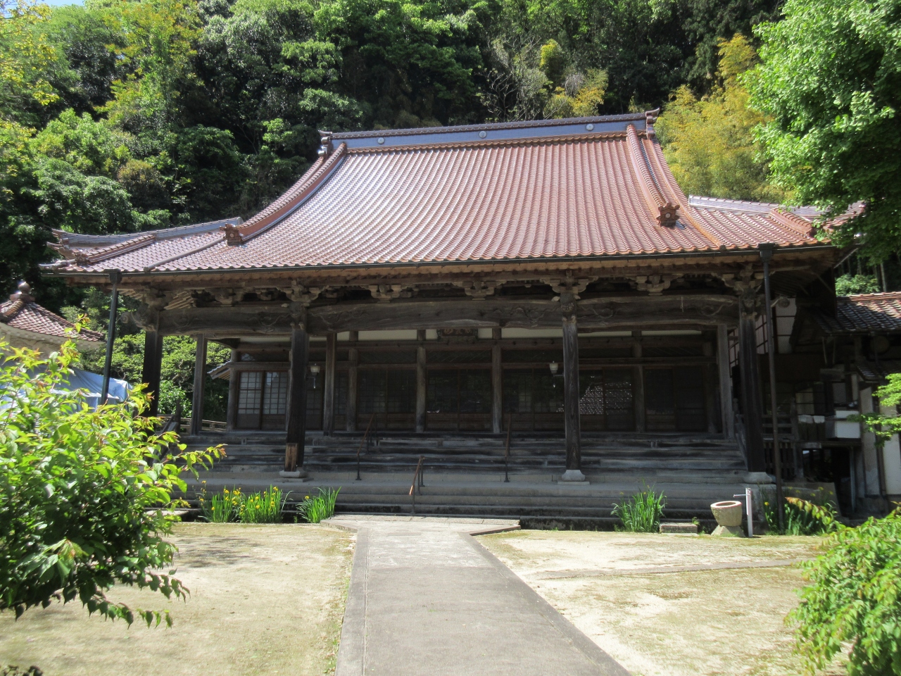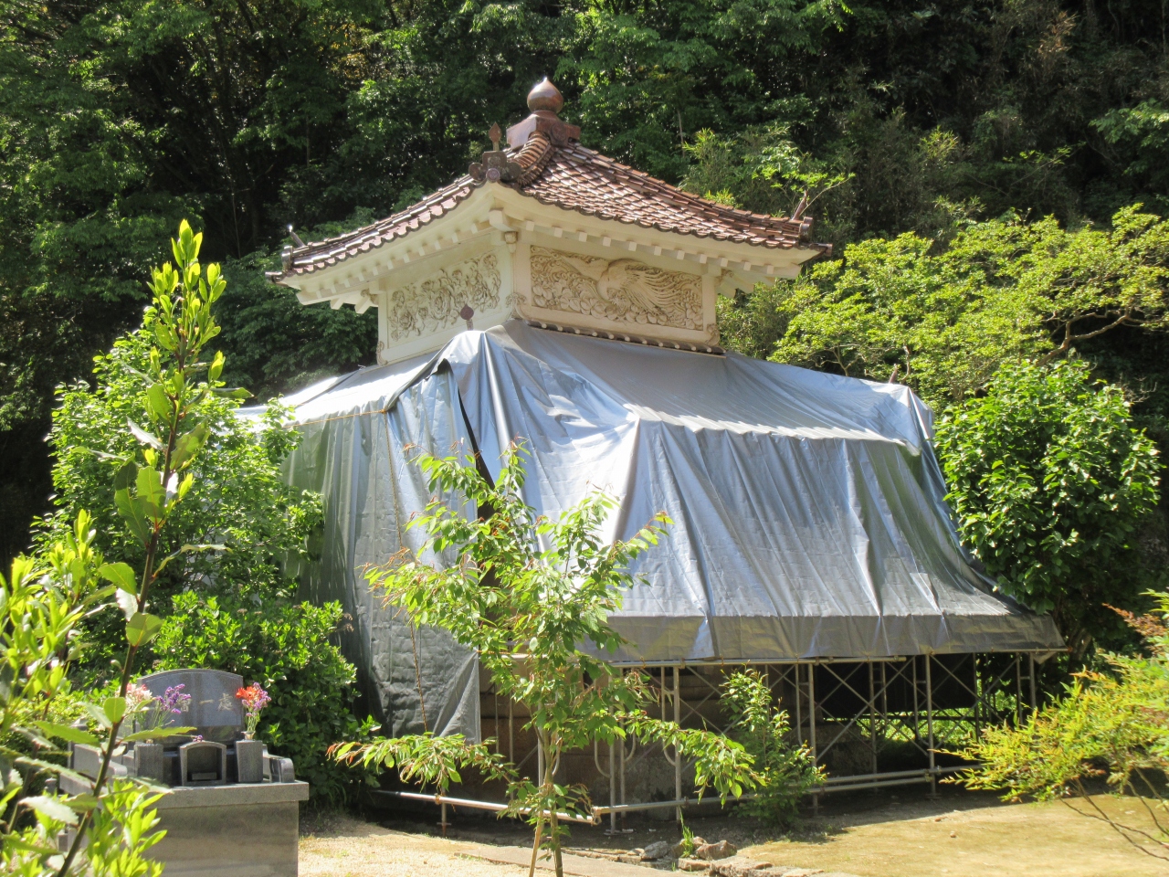 石見銀山の町並み地区にある浄土真宗寺院です。1465年創建と伝えられています。大きな木造本堂は1845年に再建され獅子や一角獣のような大きな彫り物があります。広い境内に鏝絵が特徴の経蔵が建っています。残念ながら修理中で足場が組まれてシートで覆われていました。上部だけは出ていて左官の神様と言われた松浦栄吉の鏝絵を見ることができました。そばに寄ることはできませんが、鳳凰や牡丹の花が見えました。少しだけでも見ることができてよかったです。