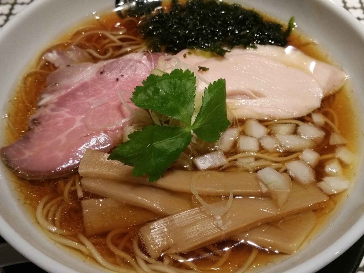 鶏系のスープが美味しいと評判のお店です。鶏煮干しそばとからあげを注文。かなり煮干し味の濃いスープにやや固めのストレート麺の組み合わせで、2種類のチャーシューが乗っています。やや煮干しが前面出すぎ感があるのと、青のりがスープにあまり合わなかったですが、美味しく頂きました。一緒に頼んだからあげも、アツアツで美味しかったです。お隣の人が注文した鶏白湯も非常に美味しそうでした。