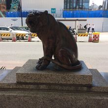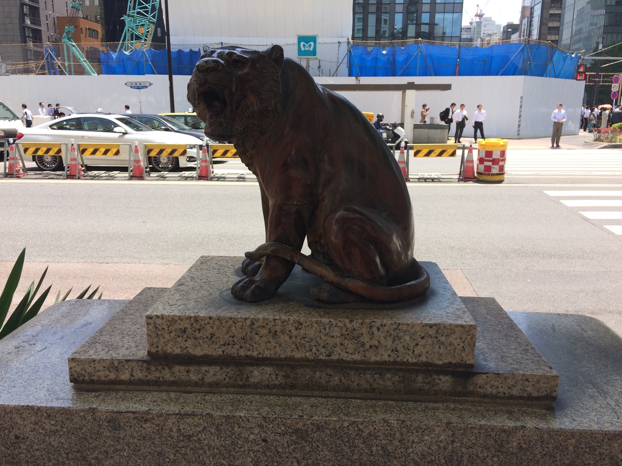 東京メトロ銀座線の虎ノ門駅の階段を上がり、虎ノ門交差点のコーヒーショップチェーン店前にありましたが、、想定していたよりもこじんまりとした石碑でした。今まで何度も前を通っていたのに気づかなかったのには理由がありますね。まるで虎が野良猫のようでした。