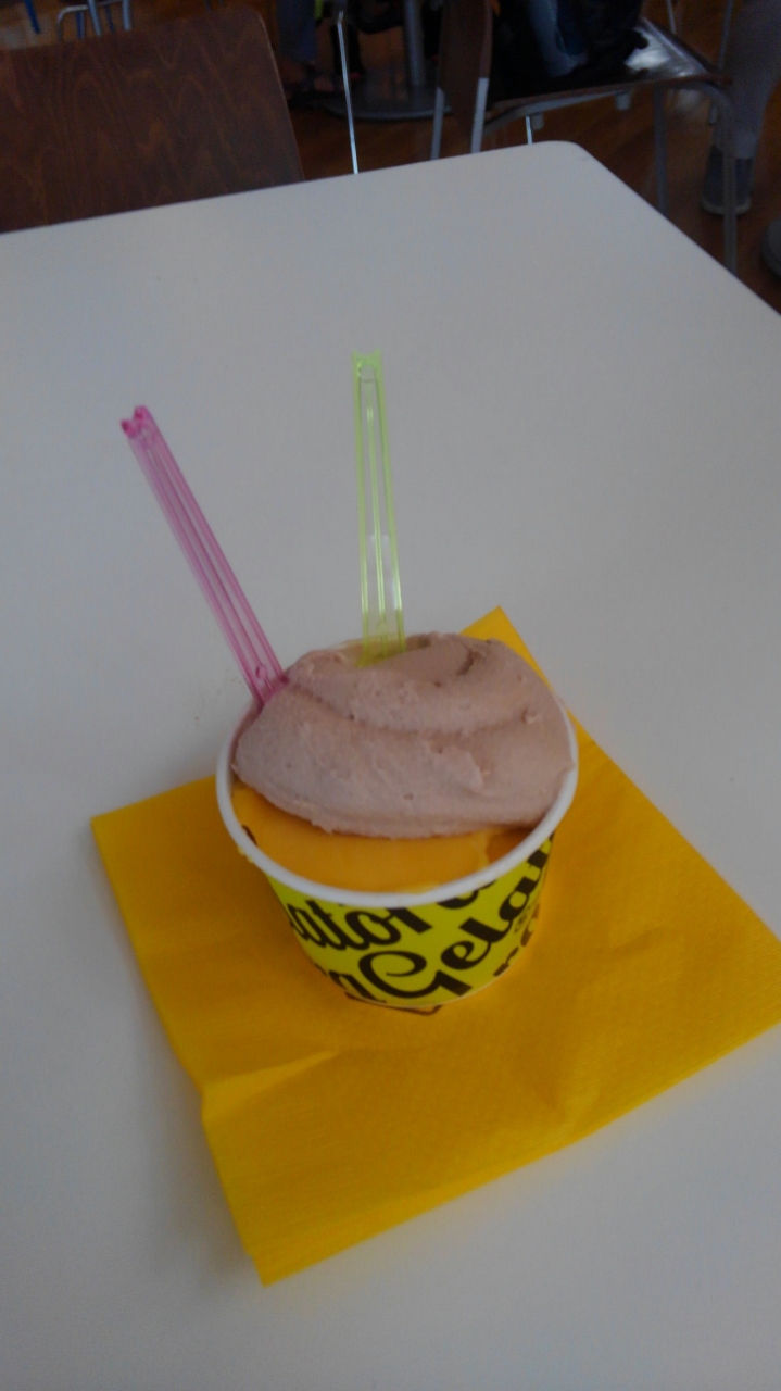 パンのトラが主体のジェラート屋さんです。パッションフルーツとマンゴーのジェラートが美味しかったです。注文するとジェラートの台が回転します。空港内の椅子に座り、ゆっくり味わいました。ジェラート屋さんからすぐ側に椅子やテーブルがあり便利です。