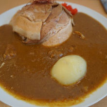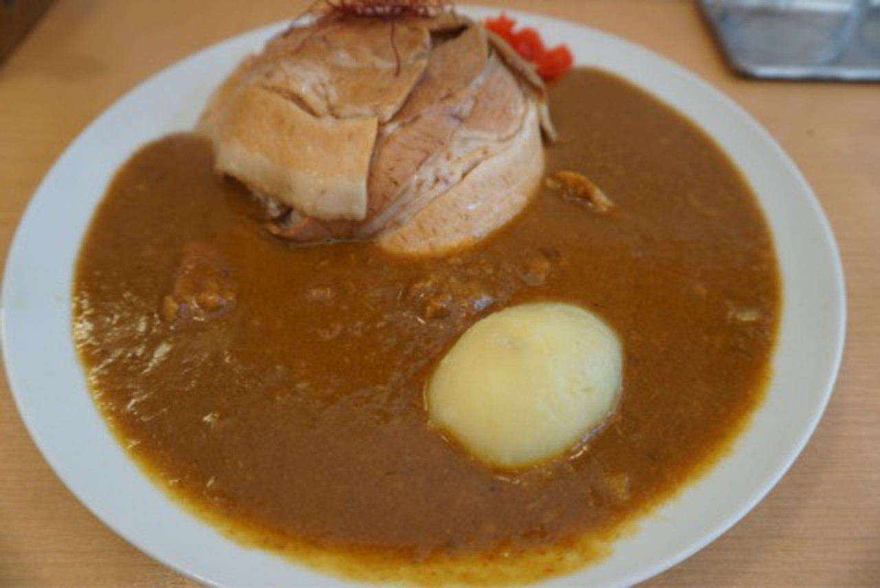 カレーはなかなか個性的なビジュアル。ご飯を覆い尽くすように自慢のとろ肉が乗せられ、カレーの上には欧風カレーのようにジャガイモが浮かんでおります。カレーは豚のゲンコツや背骨の動物系の出汁に、フルーツトマト、マンゴー、バナナなどのフィリピン由来の南国フルーツを使っているそうです。ある意味日本のカレーのアプローチにも近い印象だ。だが、フルーティーな印象の上にはスパイスをきっちり効かせています。