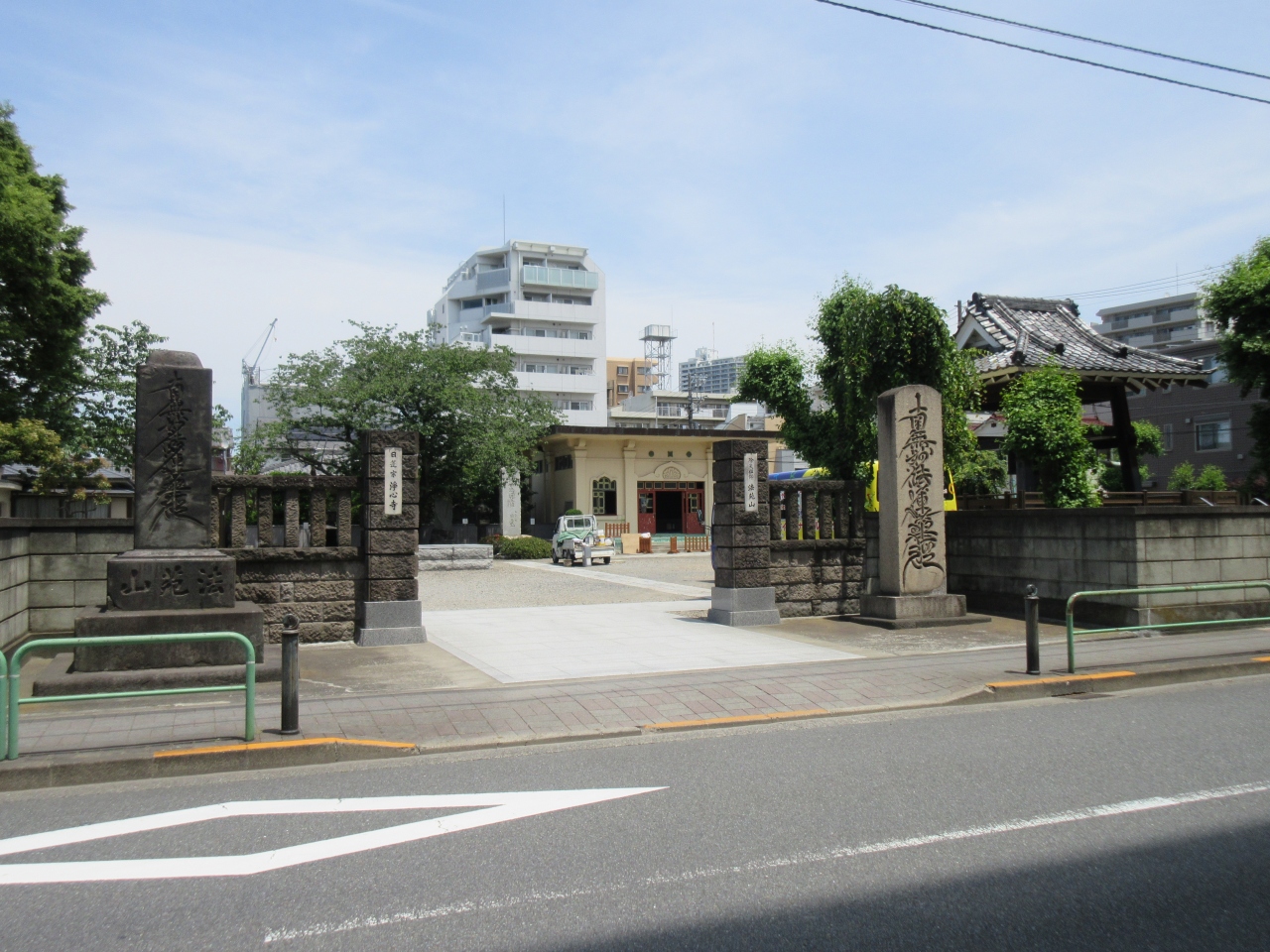 江東区の平野と三好エリアにある寺町に建つ日蓮宗の寺です。石塀が立派だったため境内に入ってみました。広い境内は駐車場になっていて、鐘楼や稲荷神社、関東大震災慰霊塔そばに白い大きな彫刻などが建っていました。本堂はインドの寺院を連想させる姿をしていました。江戸十大祖師の一つで、徳川家綱から寺領を拝領したこともあり、広い敷地を持っているようです。周辺にある寺は境内がほとんどない寺が多いため、広い境内を持つ浄心寺が印象に残りました。