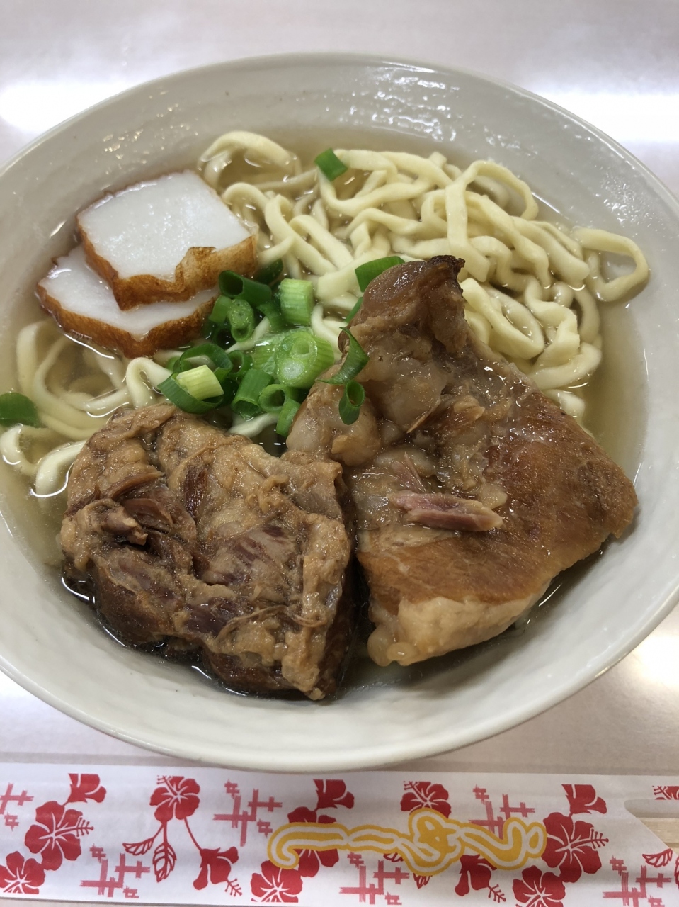 遅めの朝ごはんを食べました。メニューが多くいろいろ選べます。ソーキそばを食べました。思ってたより麺が固めでしたが、美味しくいただきました。